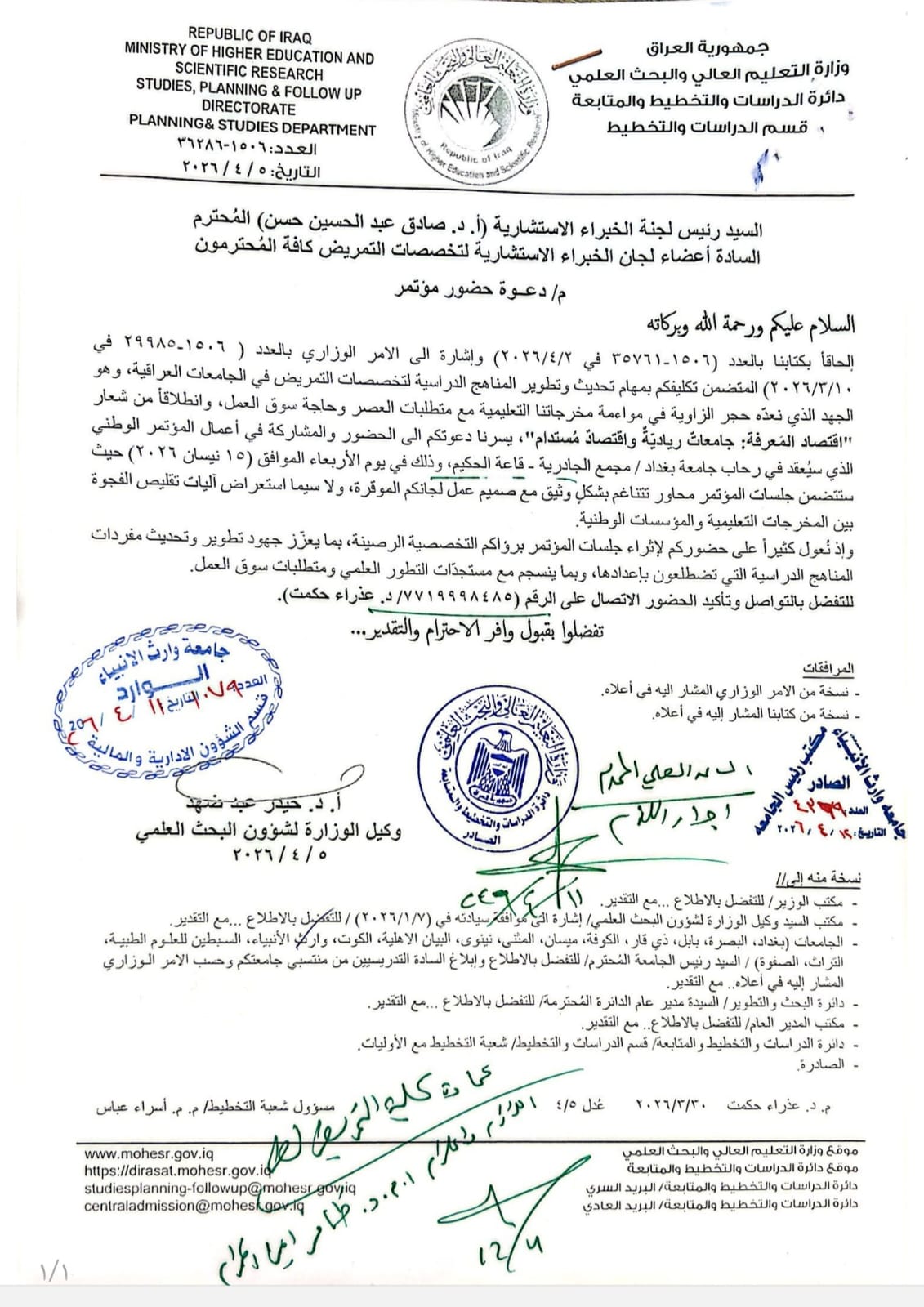 وبهذه المناسبة، تتقدم عمادة كلية التمريض بجامعة وارث الأنبياء (عليه السلام) بأسمى آيات التهاني والتبريكات، متمنيةً له دوام التوفيق والسداد في أداء مهامه العلمية والوطنية.