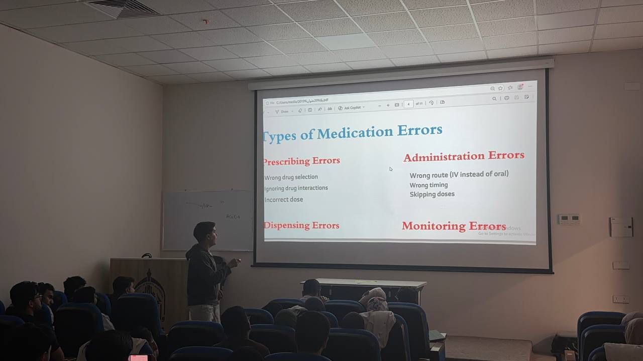 تضمن العرض شرحاً وافياً وشاملاً للثغرات التي قد تحدث في المسار الصيدلاني ، بدءاً من مرحلة التشخيص الأولي وصولاً إلى المراقبة النهائية. وتأتي هذه المبادرات كجزء أساسي من رؤية الكلية لصقل مهارات طلبة الصيدلة في التواصل الأكاديمي، وتعميق فهمهم للمسؤولية المهنية الجسيمة تجاه سلامة المرضى.