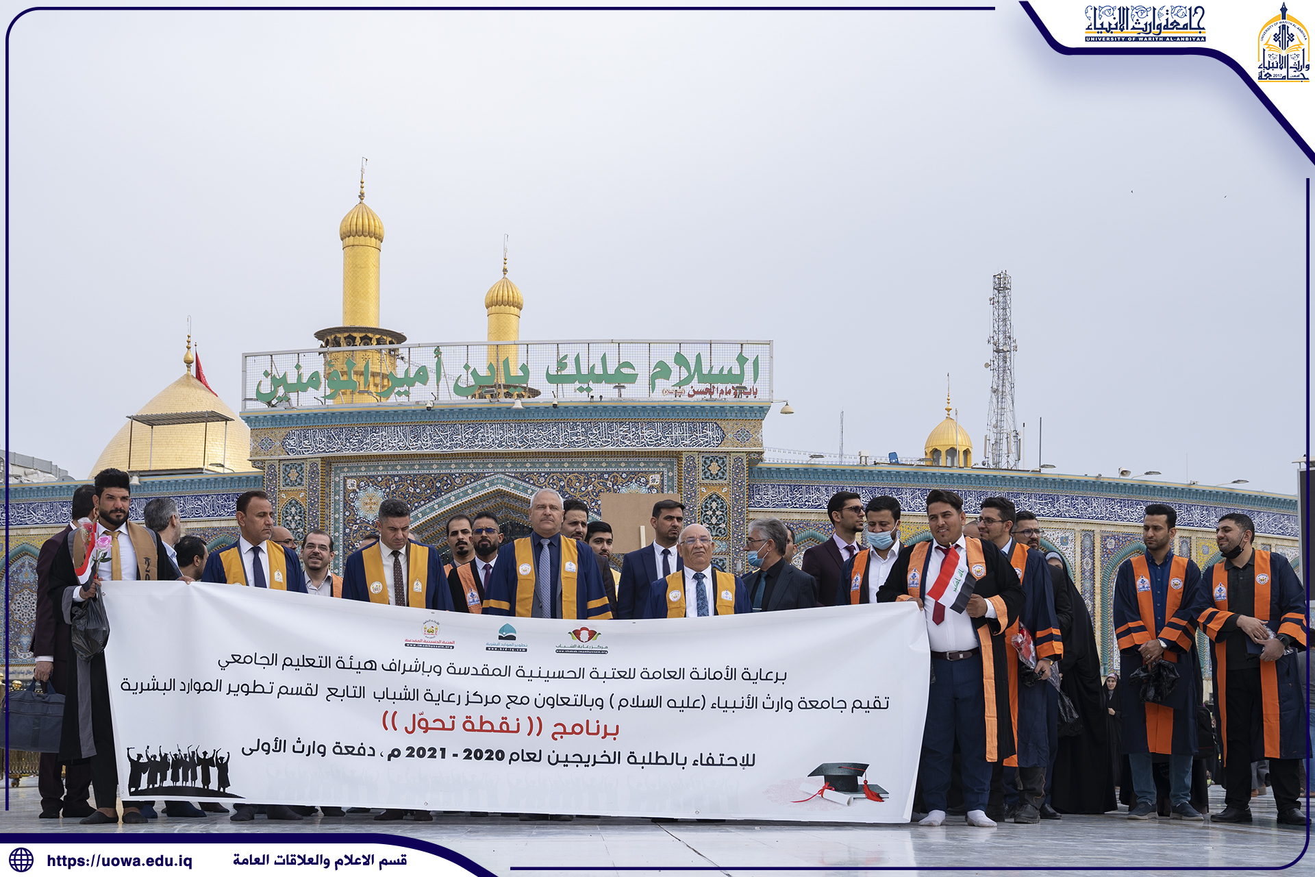 برعاية الامانة العامة للعتبة الحسينية المقدسة نظمت جامعة وارث الانبياء(عليه السلام)وبالتعاون مع مركز رعاية الشباب حفل تخرج مركزي للدفعة الأولى من طلبتها الاعزاء والتي حملت عنوان (دفعة وارث الاولى) .