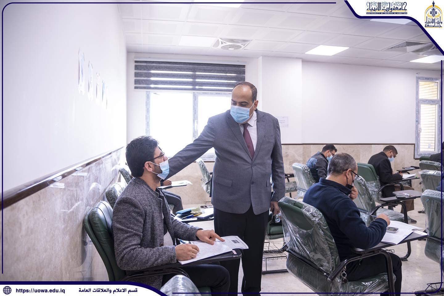 وسط إجراءات وقائية وصحية، بدأت في جامعة وارث الأنبياء(عليه السلام) الامتحانات الحضورية في كليات واقسام الجامعة، حيث اجرى السيد رئيس الجامعة الأستاذ الدكتور إبراهيم الحياوي والسيد المساعد العلمي الأستاذ الدكتور عباس الدعمي جولة تفقدية للاطلاع على سير الامتحانات الحضورية والإلكترونية، و أوعز السيد رئيس الجامعة بتوفير كافة المتطلبات اللوجستية وأكد على اتباع الإجراءات الوقائية للحفاظ على سلامة طلبتنا الأعزاء من خلال حثهم على الالتزام بالإجراءات الوقائية من لبس الكمامة والتعقيم المستمر .
