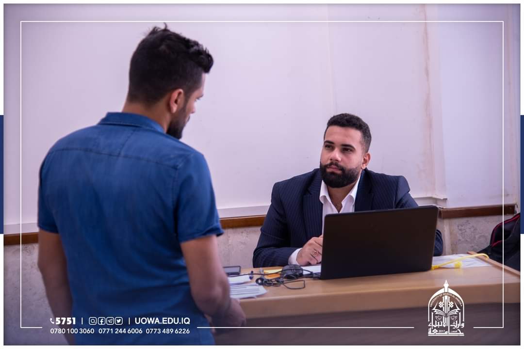 جانب من استقبال فريق التسجيل في جامعة وارث الانبياء(عليه السلام) للطلبة الاعزاء واولياء امورهم الكرام للاجابة عن استفساراتهم ومساعدتهم في انجاز اولى خطوات التقديم ،وهي انشاء حساب الطالب وملء البيانات وتفعيل القنوات الخاصة.