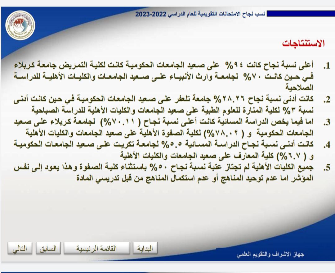 حسب ماجاء بكتاب وزارة التعليم العالي والبحث العلمي/ جهاز الإشراف والتقويم العلمي.
