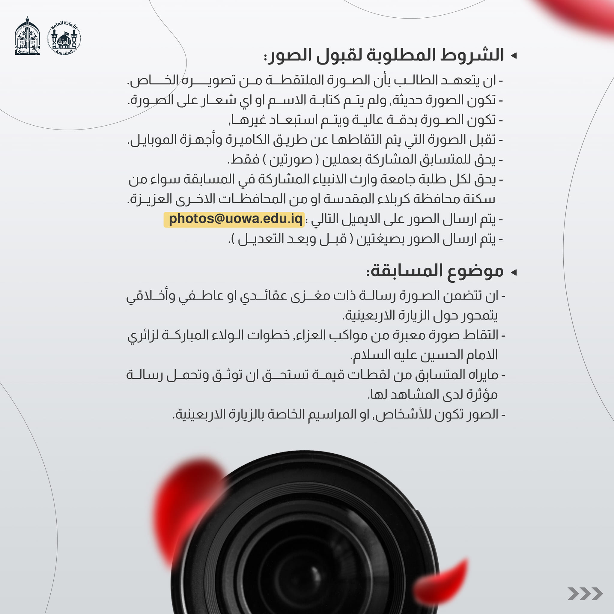 مسابقة التصوير الفوتوغرافي "خطوات الولاء" لطلبة الجامعة(حصراً)