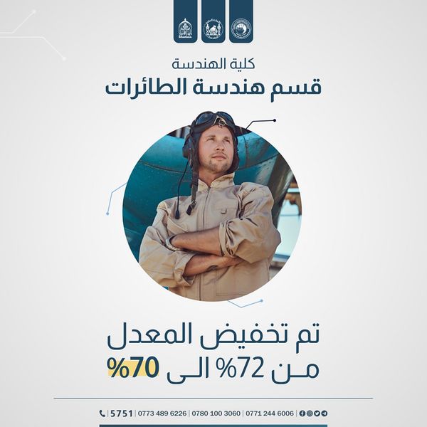 تم #تخفيض معدل القبول في قسم هندسة الطائرات ضمن كلية الهندسة من 72% إلى %70، وهو من ضمن الأقسام المستحدثة في جامعة وارث الأنبياء (عليه السلام) للعام الدراسي الحالي 2023-2024.