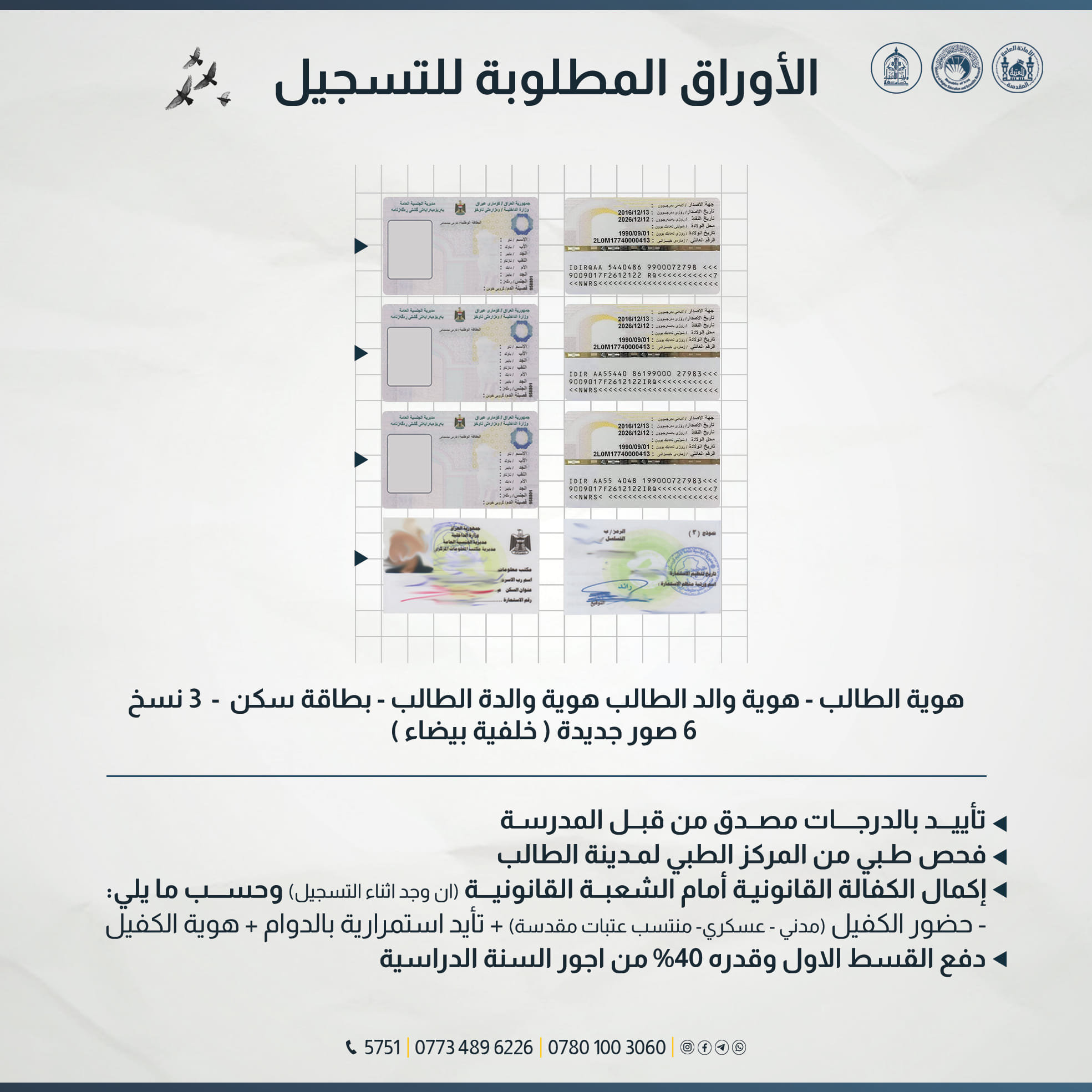 المستمسكات المطلوبة للتسجيل في المنحة المجانية