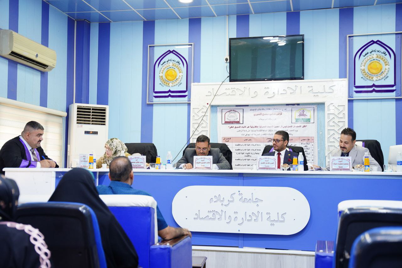 اختيار رئيس قسم ادارة الاعمال في كلية الادارة والاقتصاد عضوا في لجنة مناقشة رسالة ماجستير في جامعة كربلاء
