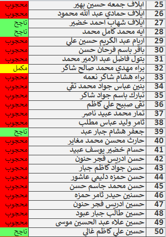نتائج امتحانات الكورس الاول قسم المحاسبة المرحلة الاولى للدراسة الصباحية والمسائية