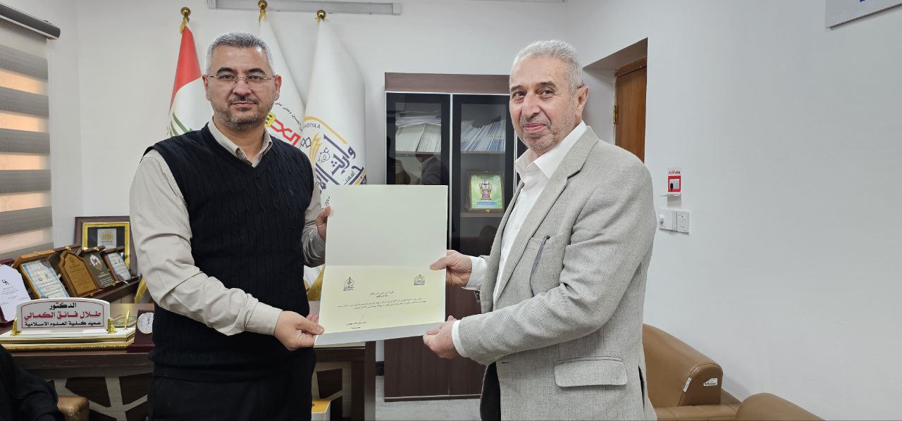 كرّم السيد عميد كلية العلوم الاسلامية أ.م.د طلال فائق الكمالي رئيسَ قسم الحاسبة المركزية وفريقه