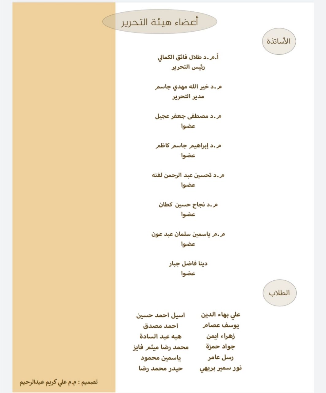 1.السيد عميد كلية العلوم الإسلامية أ.م.د طلال الكمالي