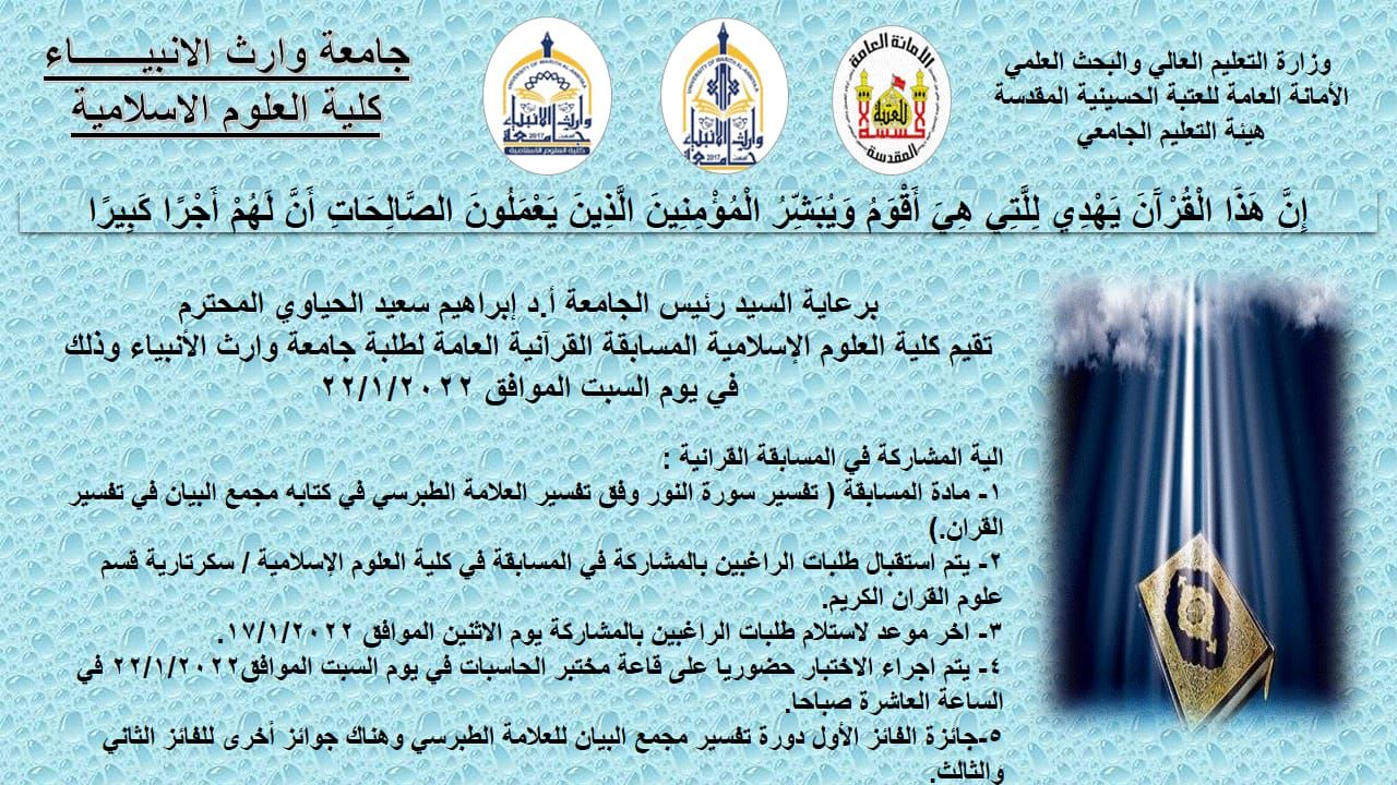 مسابقة قرآنية عامة لطلبة جامعة وارث الانبياء
