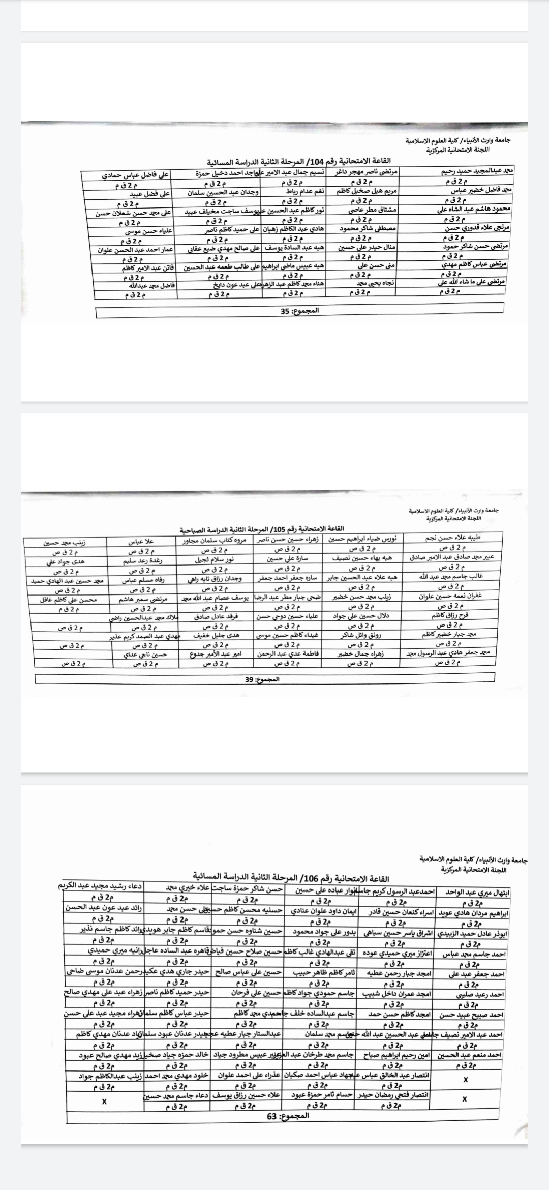 خارطة جلوس طلبة المرحلة الثانية الدراستين الصباحية والمسائية للامتحانات الحضورية لنهائي الفصل الاول