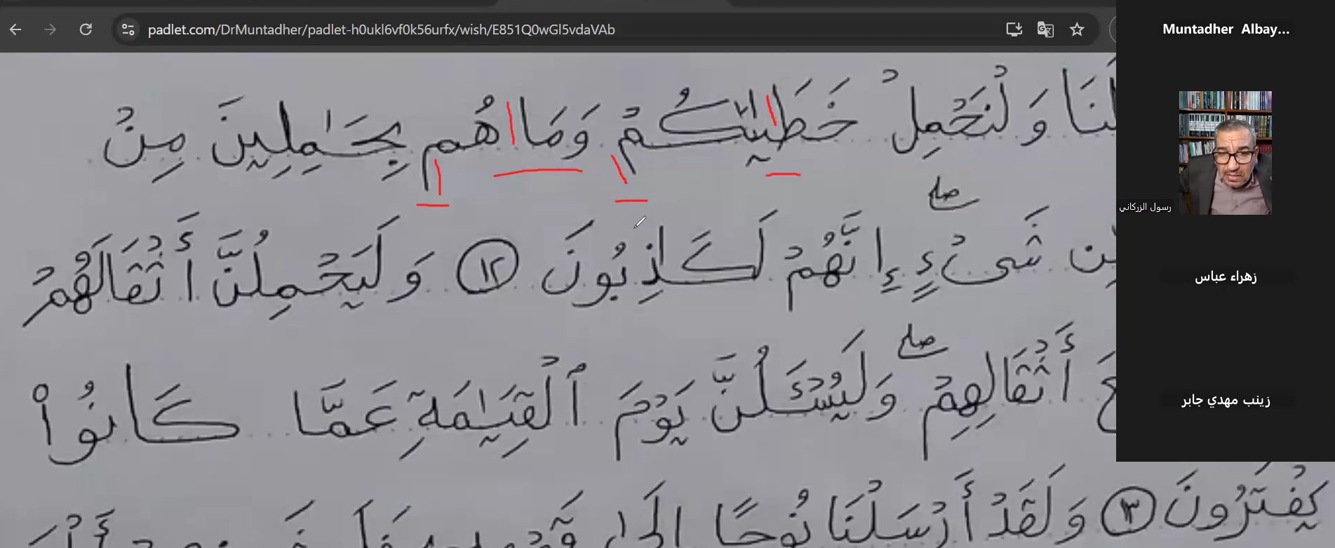 كلية العلوم الإسلامية تقيم الورشة الثالثة لمشروع "كلمات من النور" لتصحيح التمارين ومراجعة الأداء عبر الإنترنت
