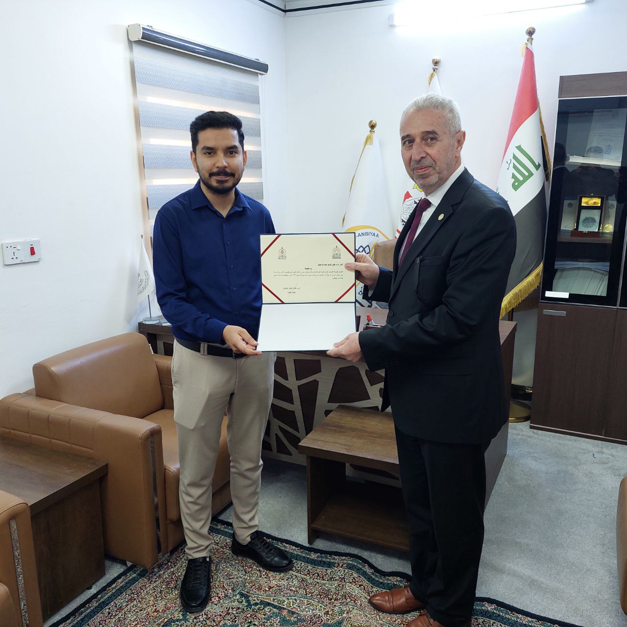 رئيس اللجنة العليا للشؤون الثقافية والفكرية المرتبطة بمعالي وزير التعليم العالي والبحث العلمي متمثلة برئيسها الاستاذ الدكتور حيدر عبد الزهرة التميمي والوفد المرافق له،