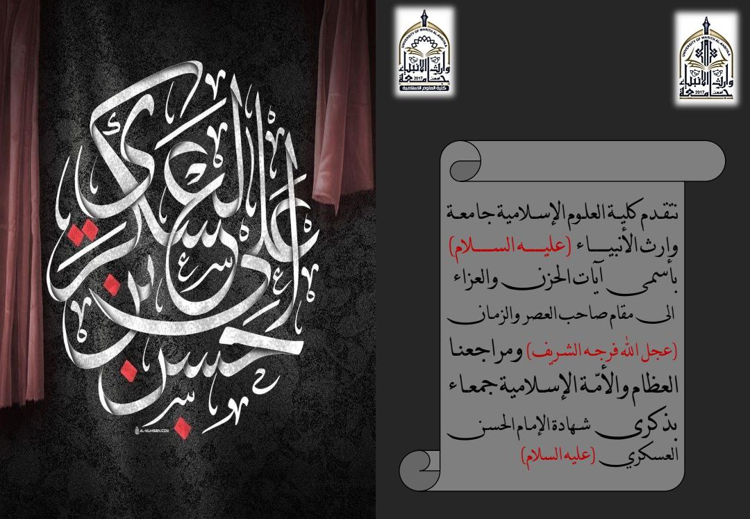 الى مقام صاحب العصر والزمان (عجل الله فرجه الشريف) ومراجعنا العظام والأمّة الإسلامية جمعاء بذكرى شهاد الإمام الحسن العسكري (عليه السلام)