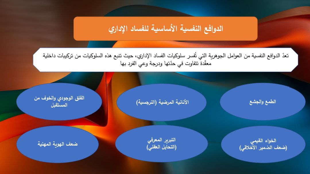 وأكّد الأستاذ النصراوي أن الإجراءات القانونية والإدارية، رغم ضرورتها، لا تكفي وحدها لمكافحة الفساد الإداري، ما لم تُرفَد بمقاربات نفسية متكاملة تُعنى بإصلاح البنية الداخلية للفرد وتعزيز المناعة القيمية في البيئة المؤسسية.