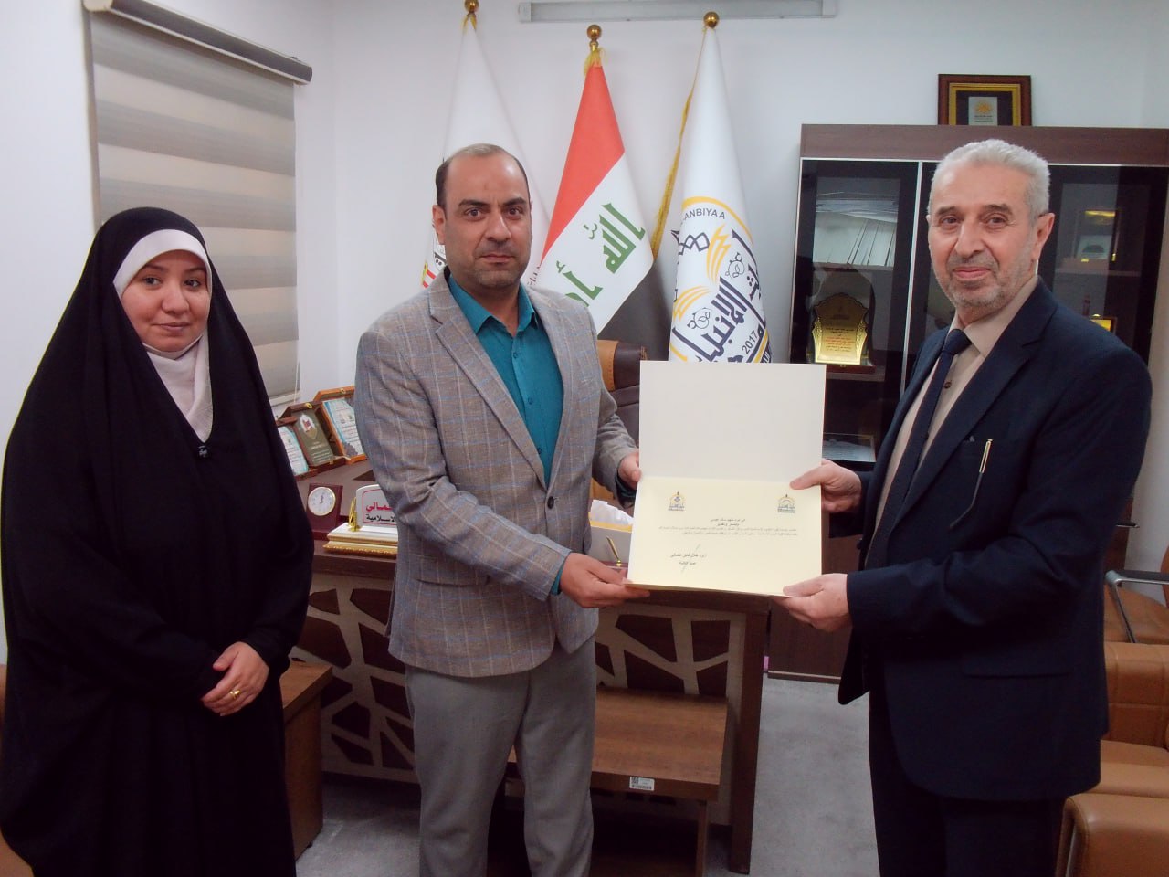 كرّم السيد عميد كلية العلوم الإسلامية في جامعة وارث الأنبياء (عليه السلام) الدكتور طلال فائق الكمالي، الدكتور ملهم سالم عيسى، تقديرًا لجهوده المبذولة في إنشاء المكتبة الإلكترونية الخاصة بالكلية وربطها بـ المكتبة المركزية التابعة للعتبة الحسينية المقدسة.