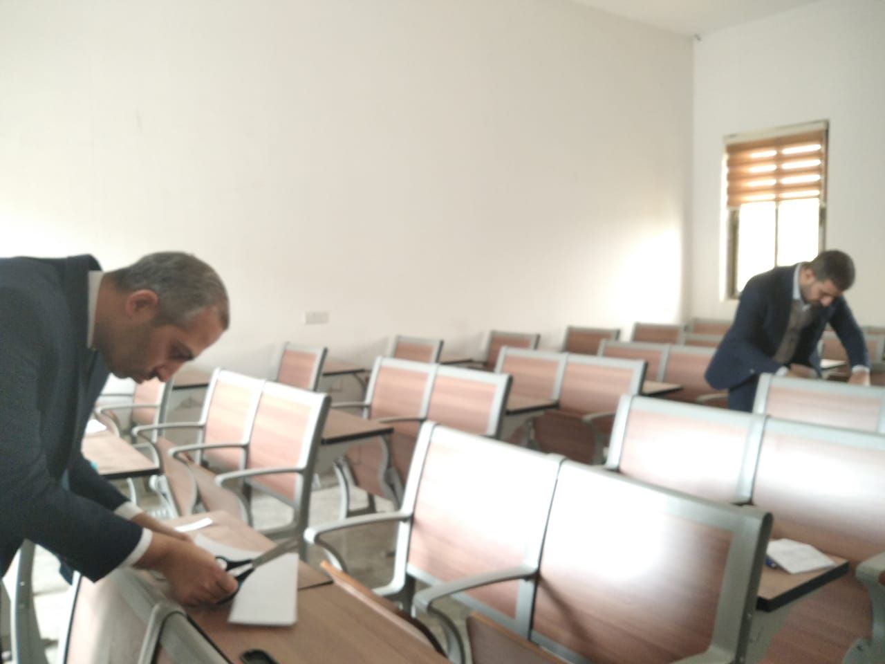 تقوم كلية العلوم الإسلامية بتهيأة القاعات الدراسية استعداداً لاداء طلبتها للامتحانات الحضورية النهائية للفصل الاول