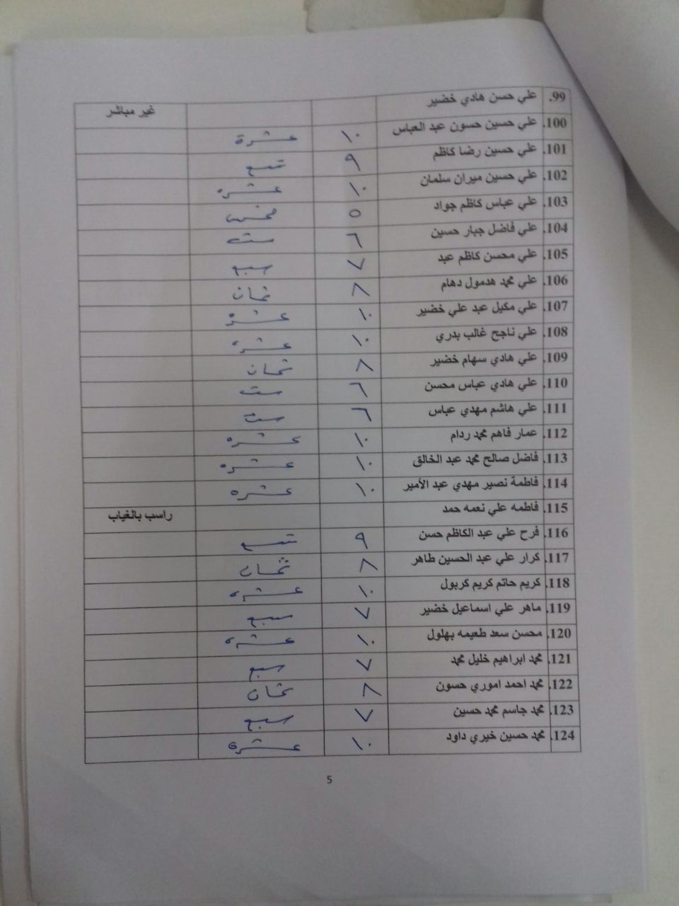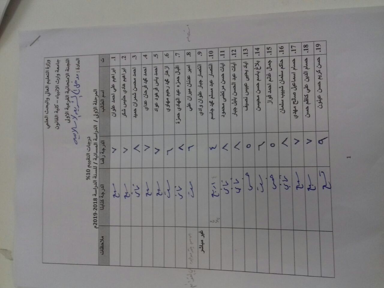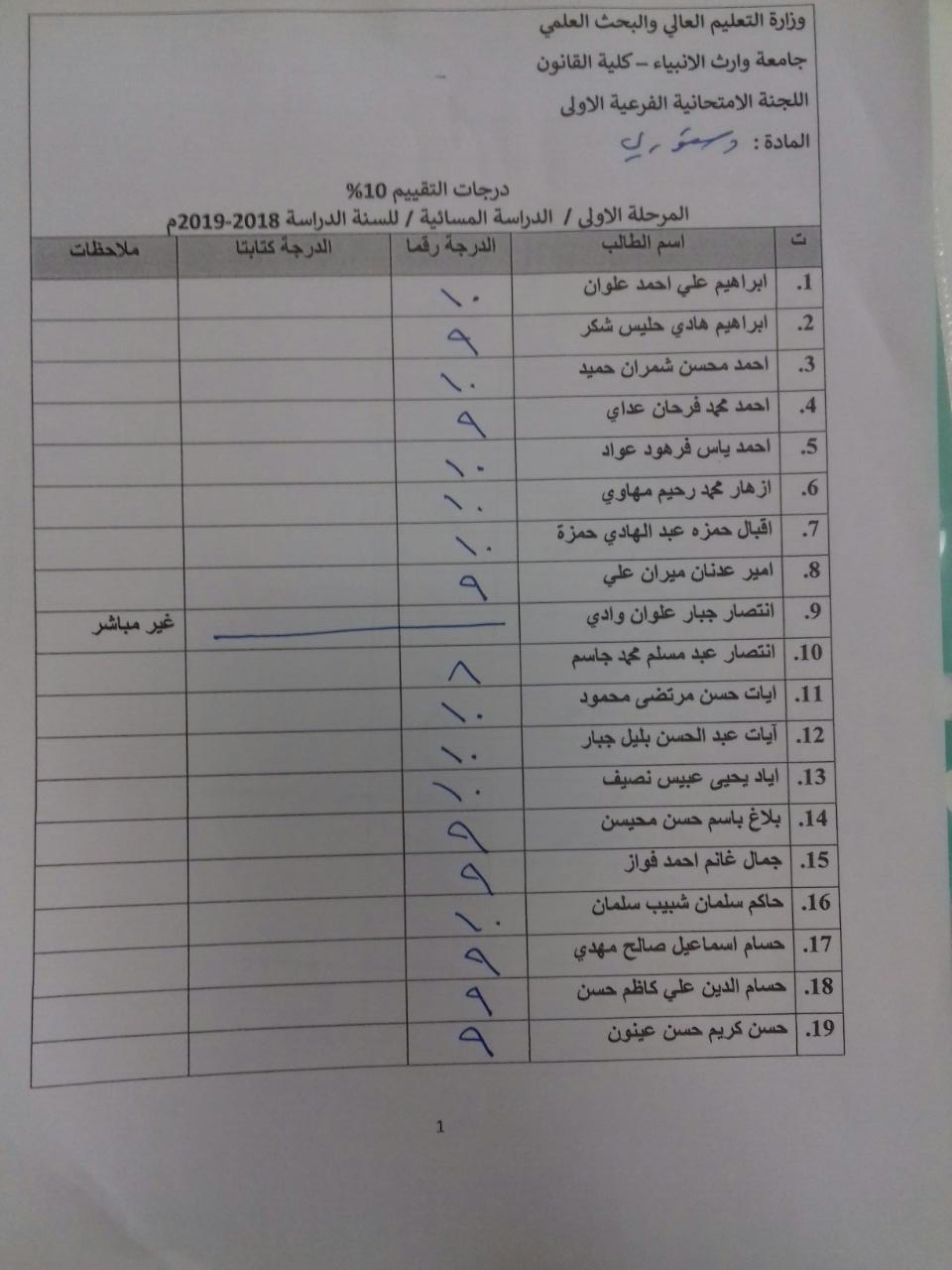 درجات الشفوي (المرحلة الاولى)
