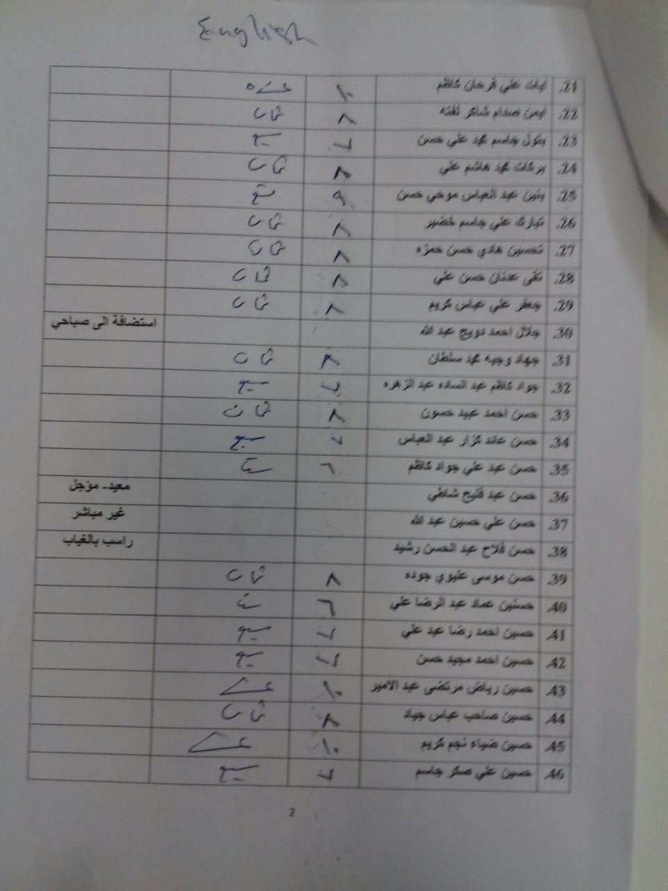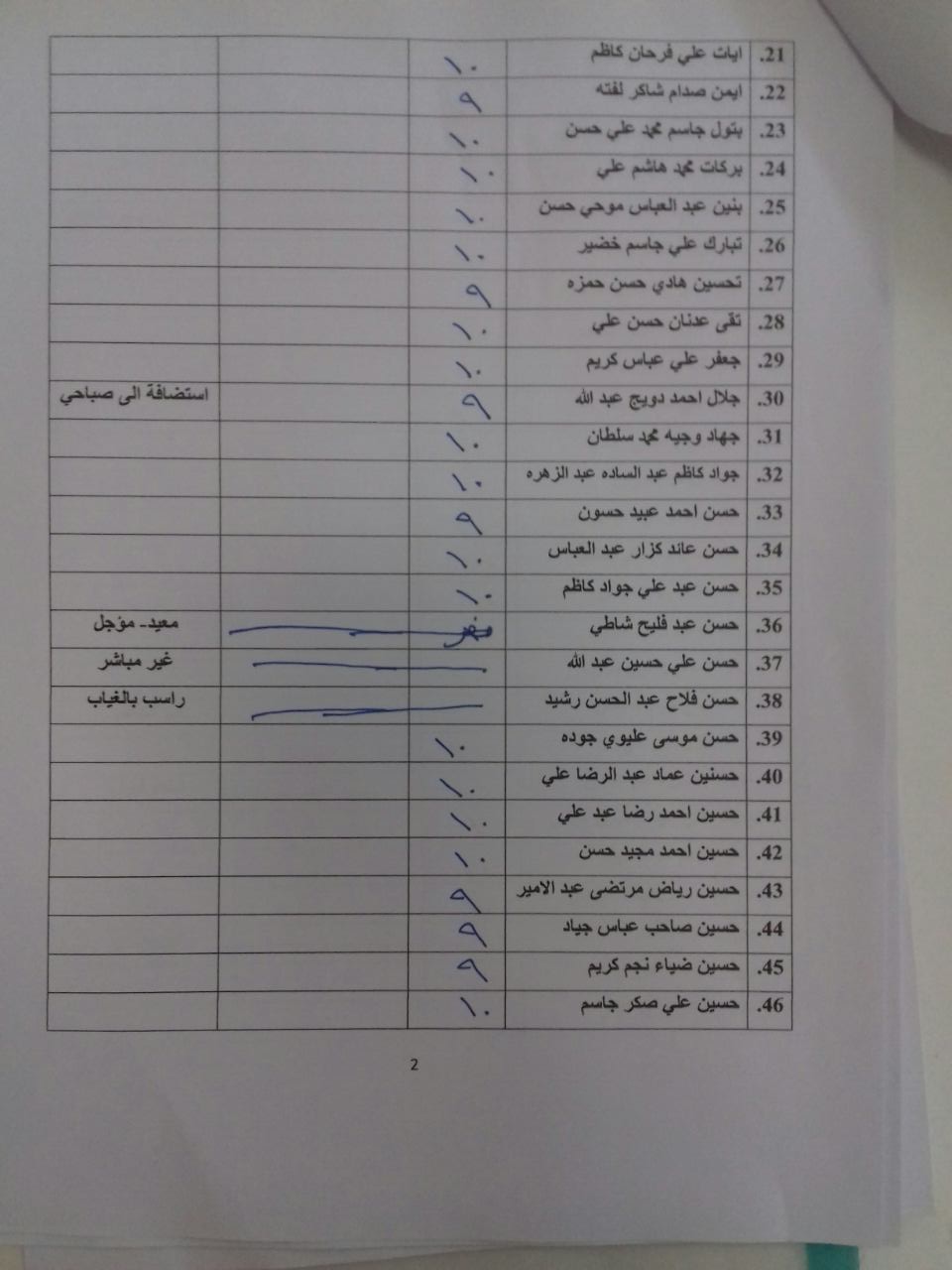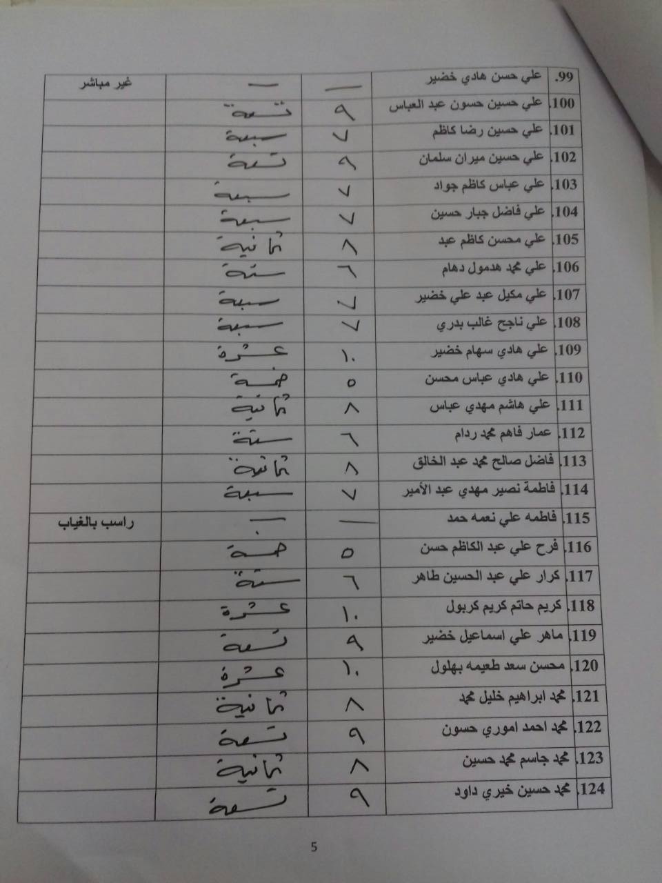درجات الشفوي (المرحلة الاولى)