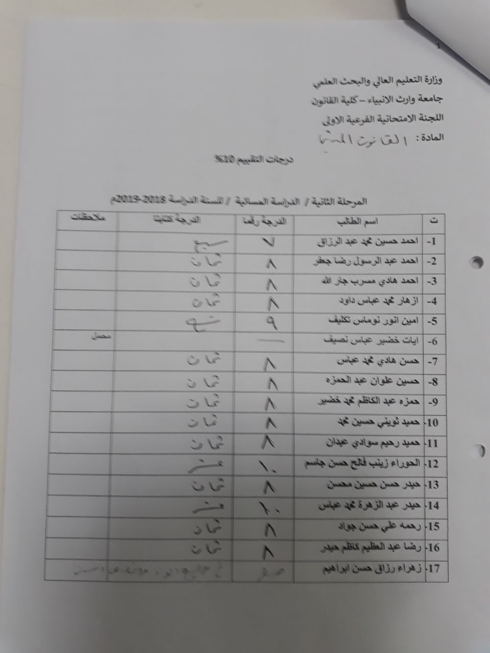 إجراء الامتحان المشترك لتعزيز الرصانة العلمية في قسم العلوم المالية والمصرفية الاسلامي كلية العلوم الاسلامية
