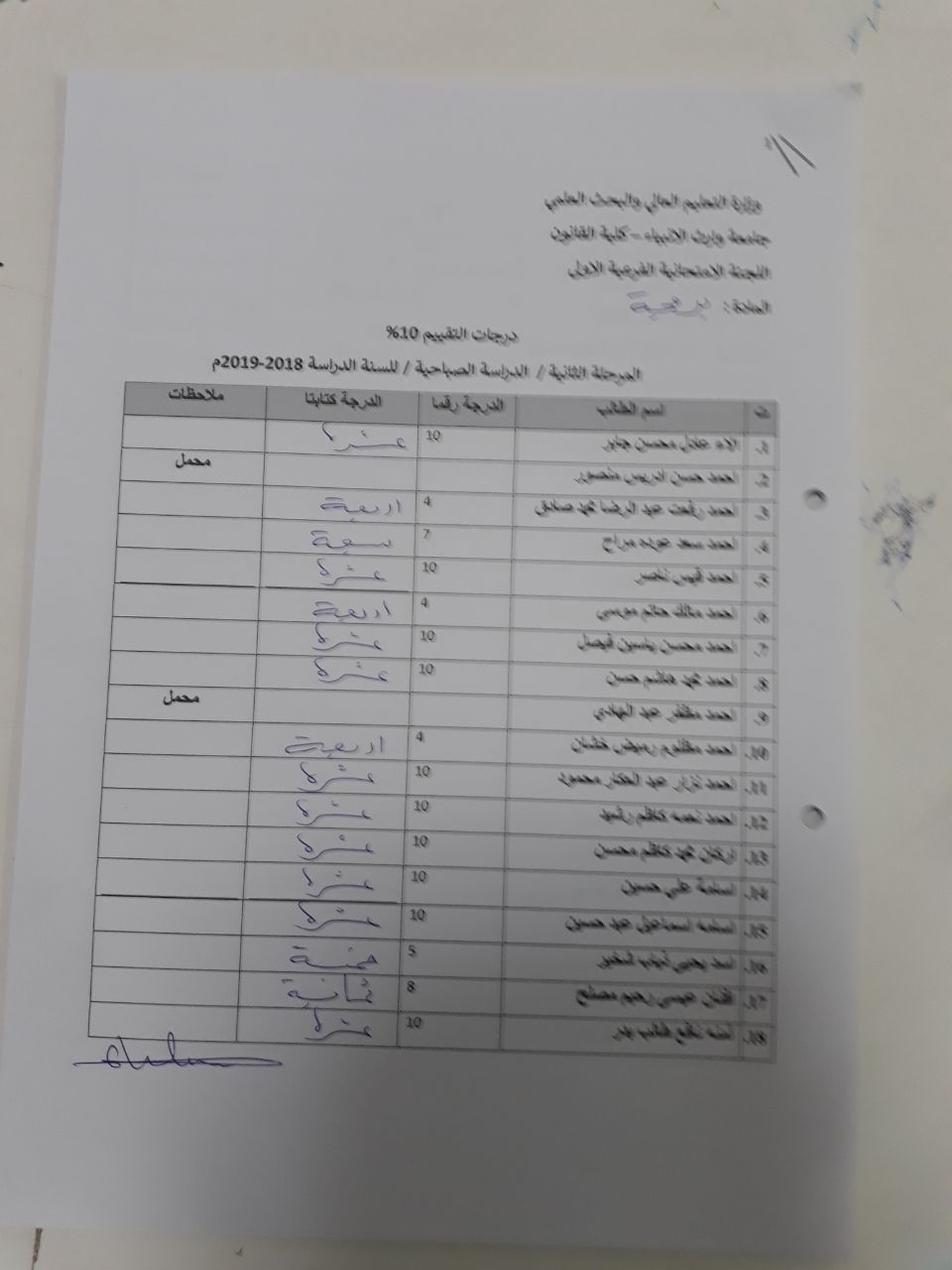 درجات الشفوي (المرحلة الثانية)