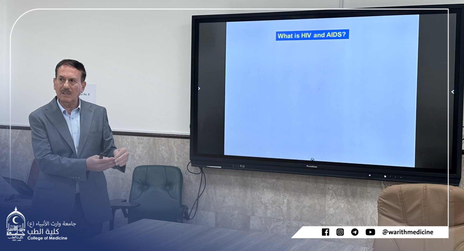 برعاية السيد رئيس جامعة وارث الانبياء عليه السلام الاستاذ الدكتور ابراهيم سعيد المحترم واشراف وحضور السيد عميد كلية الطب الاستاذ الدكتور علي عبد سعدون المحترم اقامت كلية الطب ندوة علمية بعنوان الجديد في علاج مرض الايدز وحاضر فيها الاستاذ الدكتور فلاح الحمامي.