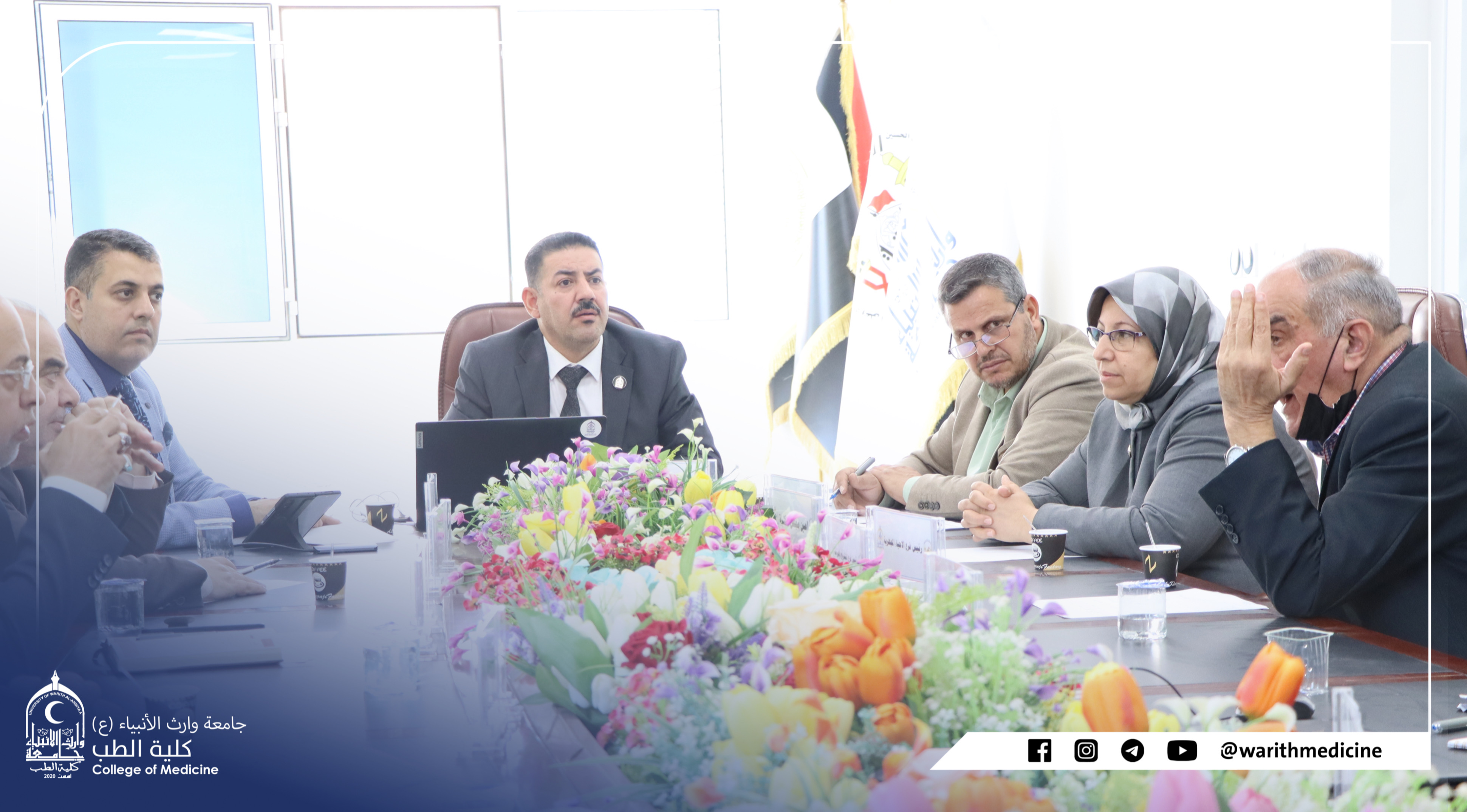 مجلس كلية الطب جامعة وارث الانبياء ( عليه السلام) يعقد جلسته الاعتيادية بحضور السيد عميد كلية الطب المحترم الاستاذ الدكتور علي عبد سعدون والسادة المعاونين المحترمين والسادة رؤساء الفروع.