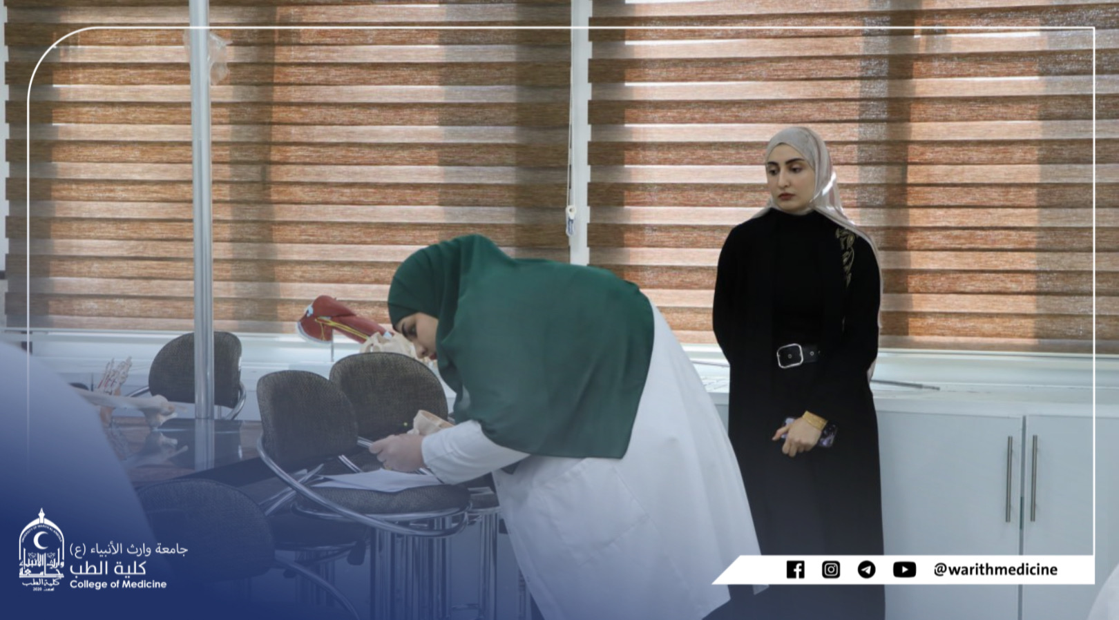 بأشراف ومتابعة السيد عميد كلية الطب الاستاذ الدكتور علي عبد سعدون الغزي المحترم والسيد معاون العميد للشؤون العلمية المدرس الدكتور رياض حنيوه المحترم والسيد معاون العميد للشؤون الادارية الاستاذ الدكتور علي منصور المحترم ادى طلبة كلية الطب الامتحانات العملية للفصل الاول.