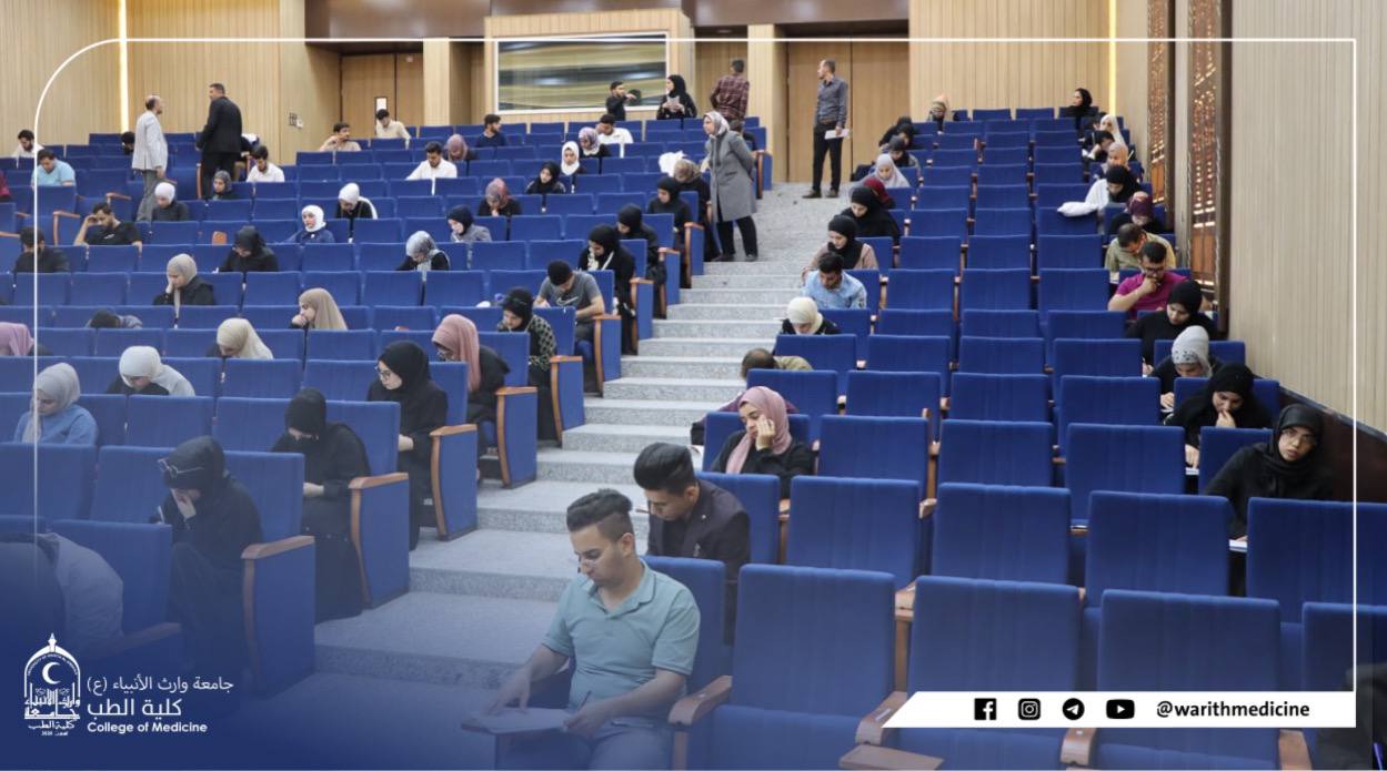 بمتابعة السيد عميد كلية الطب الاستاذ الدكتور علي عبد سعدون المحترم يستمر طلبة المرحلة الاولى كلية الطب جامعة وارث الانبياء عليه السلام في اداء الامتحانات نهاية الكورس وطلبة المرحلة الرابعة في اداء امتحانات الاوسكي والامتحانات الشهرية متمنين لطلبتنا الاعزاء دوام الموفقية والنجاح.