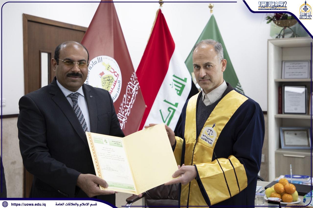 كرم السيد رئيس هيئة التعليم الجامعي في العتبة الحسينية المقدسة الاستاذ الدكتور حيدر التميمي ،والسيد رئيس الجامعة الاستاذ الدكتور ابراهيم سعيد الحياوي ، والسيد المساعد العلمي الاستاذ الدكتور عباس الدعمي،معاون عميد كلية الهندسة المهندس الاستشاري الدكتور حسين هادي بمناسبة ترقيته العلميّة الى مرتبة (استاذ مساعد)، سائلين الله عز وجل ان يوفقه للمزيد من العطاء العلمي لخدمة المسيرة التعليمية في بلدنا العزيز .