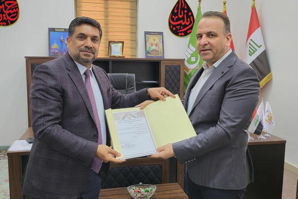 في إطار التعاون المشترك بين جامعتي وارث الانبياء(عليه السلام) كربلاء وتفعيلاً للاتفاقية المشتركة بين الجامعتين وقع السيد عميد كلية الهندسة / جامعة وارث الانبياء(عليه السلام) أ.م. د. حاكم سماوي الجبوري وعميد كلية الهندسة / جامعة كربلاء أ.د. ليث القرعاوي اتفاقية تعاون علمي بين الكليتين حيث تضمنت هذه الإتفاقية العديد من مجالات التعاون لاسيما في المجال البحثي وتبادل الخبرات والإشراف المشترك على طلبة الدراسات العليا والأولية وغيرها من الأمور التي تعود بالفائدة العلمية لكلا الطرفين وكذلك في مجالات خدمة المجتمع.. وقد حضر التوقيع الاستاذ الدكتور حسين سالم رئيس قسم هندسة الطب الحياتي والدكتور علي محمد حسين رئيس قسم هندسة التكييف والتبريد في الكلية ووفد من كلية الهندسة/ جامعة كربلاء.. وعلى هامش الاتفاقية التقى الوفد مع الاستاذ الدكتور ابراهيم سعيد الحياوي رئيس الجامعة والمساعد العلمي ا.د. عباس الدعمي و المساعد الإداري ا. د. نوفل الاعرجي حيث تم تبادل الآراء لتطوير الجانب العلمي والثقافي خدمة للجامعتين ولمدينة كربلاء.