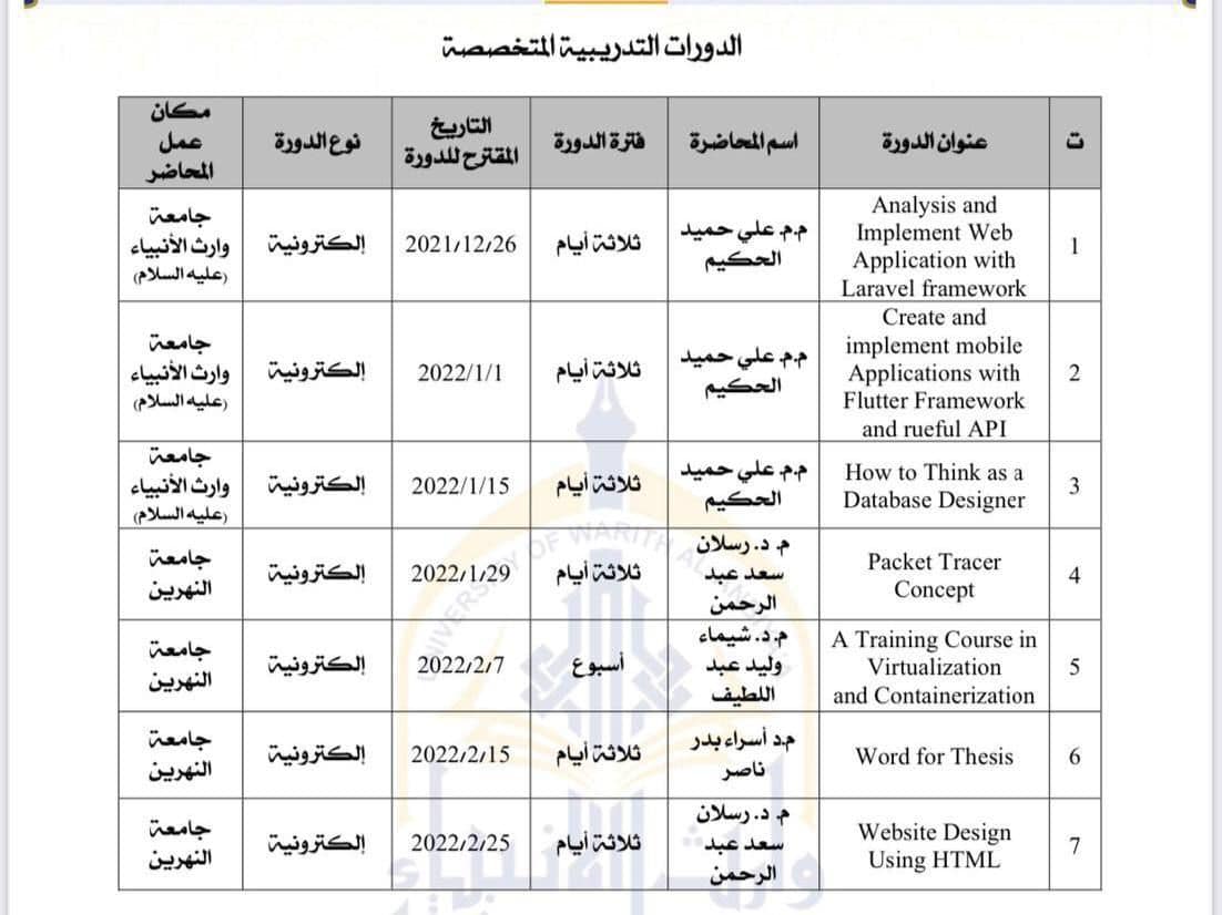 * يحاضر في الدورة (م.م.علي حميد الحكيم). *للانضمام الى الدورة يرجى الدخول على الرابط ( https://meet.google.com/uzk-bsbx-cox). *يحصل المشاركون على شهادات مشاركة معتمده صادره عن مركز التعليم المستمر في جامعة وارث الانبياء (عليه السلام).