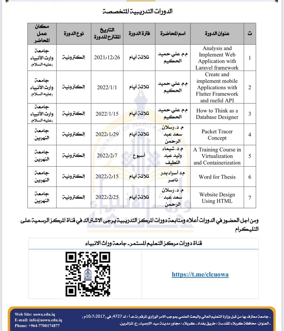 *لمتابعة الدورات واخبار المركز يرجى الاشتراك في القناة على التليكرام على الرابط التالي: https://t.me/clcuowa