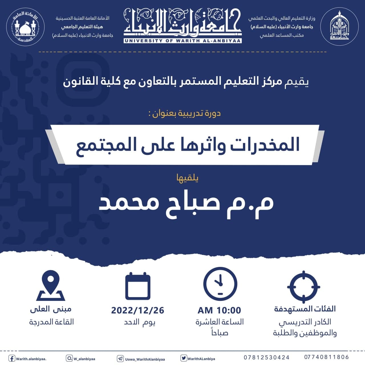 #الامانة_العامة_للعتبة_الحسينية_المقدسة#هيئة_التعليم_الجامعي#جامعة_وارث_الانبياء_عليه_السلام#قسم_الاعلام_والعلاقات_العامة