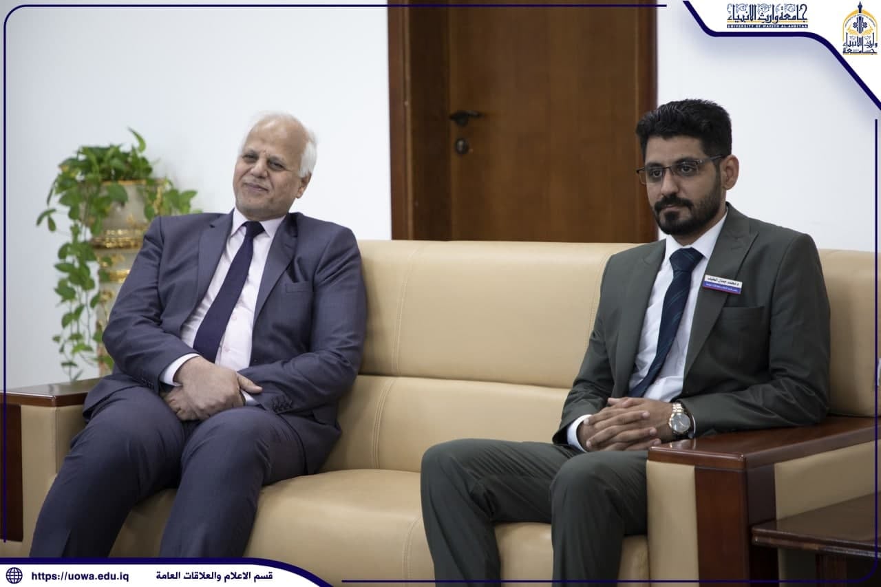 زار وفد من جامعة كربلاء ترأسه الاستاذ الدكتور باسم السعيدي رئيس الجامعة ومرافقه المساعد الاداري الاستاذ الدكتور أكرم الياسري، جامعة وارث الانبياء(عليه السلام)، لتقديم التهاني الى الاستاذ الدكتور ابراهيم سعيد الحياوي بمناسبة تسنمه منصب رئاسة الجامعة سائلين الله (عز وجل) ان يوفقه لخدمة المسيرة العلمية في بلدنا العزيز.