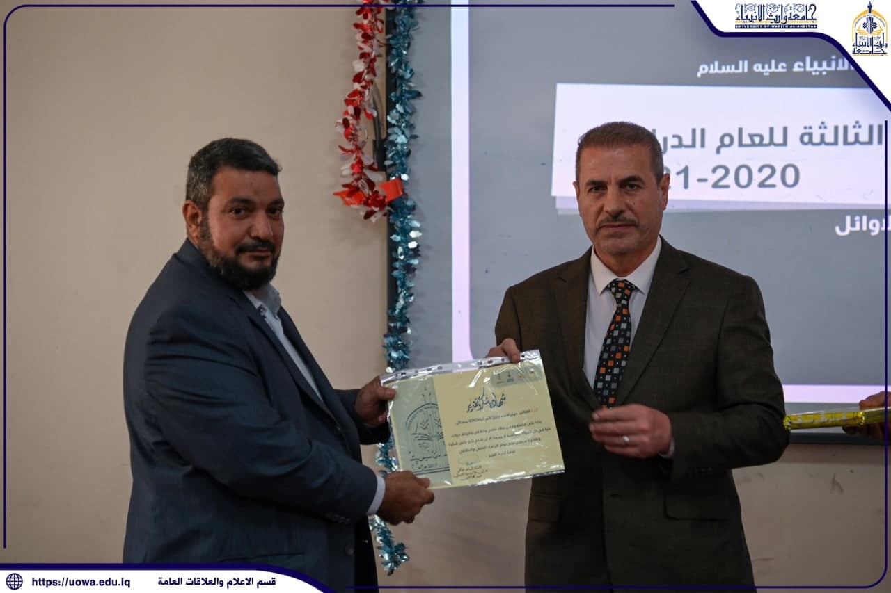 احتفت عمادة كلية القانون في جامعة وارث الانبياء (عليه السلام) بطلبتها الأوائل ولكلا الدراستين الصباحية والمسائية، وذلك عبر تقديم شهادات الشكر والتقدير و الهدايا التشجيعية تثميناً لجدهم واجتهادهم ولتحفيز بقية الطلبة للمزيد من الاجتهاد العلمي .