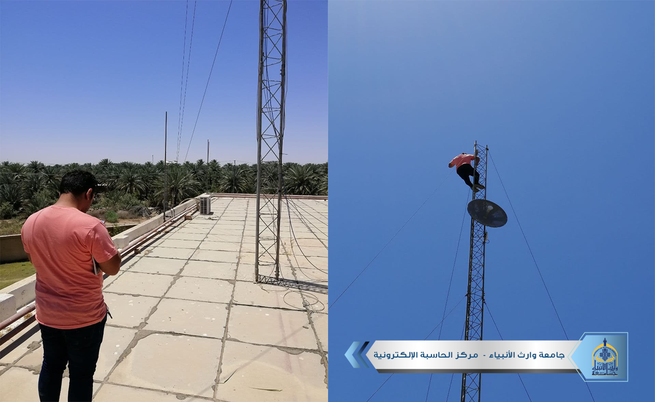 بالتنسيق مع شعبة الصيانة و الشبكات داخل الجامعة تمت معاينة موقع برج الانترنت للجامعة وبالتعاون مع إحدى الشركات المتخصصة لتحديد موقع برج الجامعة وبعده عن أقرب برج للشركة لربطه بواسطة لنك خاص .