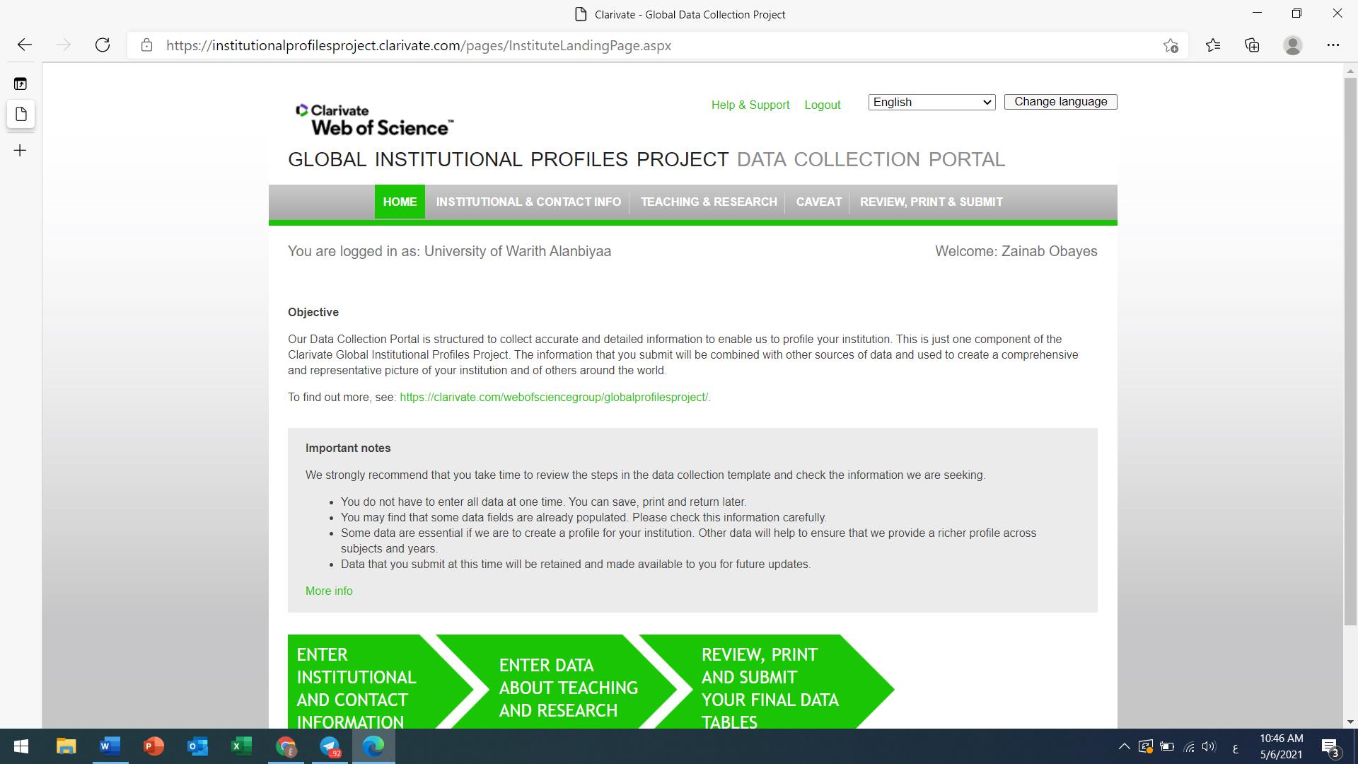 6. تم انشاء بروفايل خاص بجامعة وارث الانبياء على صفحة التصنيف البريطاني العالمي The Times Ranking.