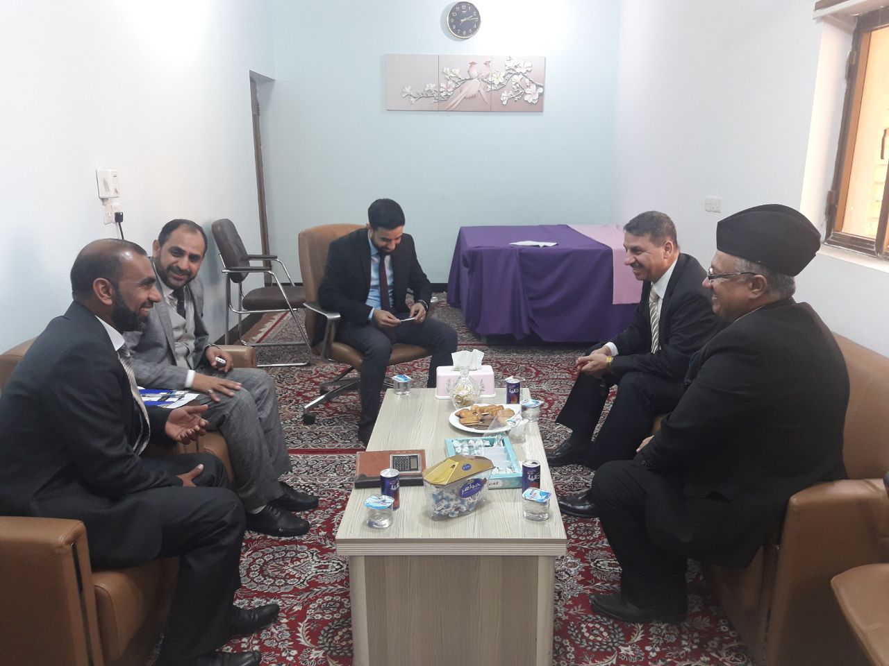 زيارة وفد طبي ممثلا بالدكتور حسين محبس الحصناوي المعاون العلمي لمستشفى الهندية والدكتور علي خضير العنبوري رئيس الاستشاريين الدوليين .حيث تطرق الجانبين الى الأمور العلمية التي تخص الجامعات وخاصة فيما يتعلق بالجوده والاعتمادية وتطرق دكتور علي عن إمكانية الاستفادة من خدماتهم الاستشارية كونهم جهة ترعى الأمور التي تتعلق بالجودة والاعتمادية .وأبدى الوفد الضيف بالخطوات الجيدة والمتسارعة التي تسيير بها جامعة وارث الانبياء نحو الارتقاء العلمي والوصول إلى الاعتمادية .وقد حضر الاجتماع الدكتور عباس الدعمي المساعد العلمي والدكتور خميس بندر عميد كلية التمريض