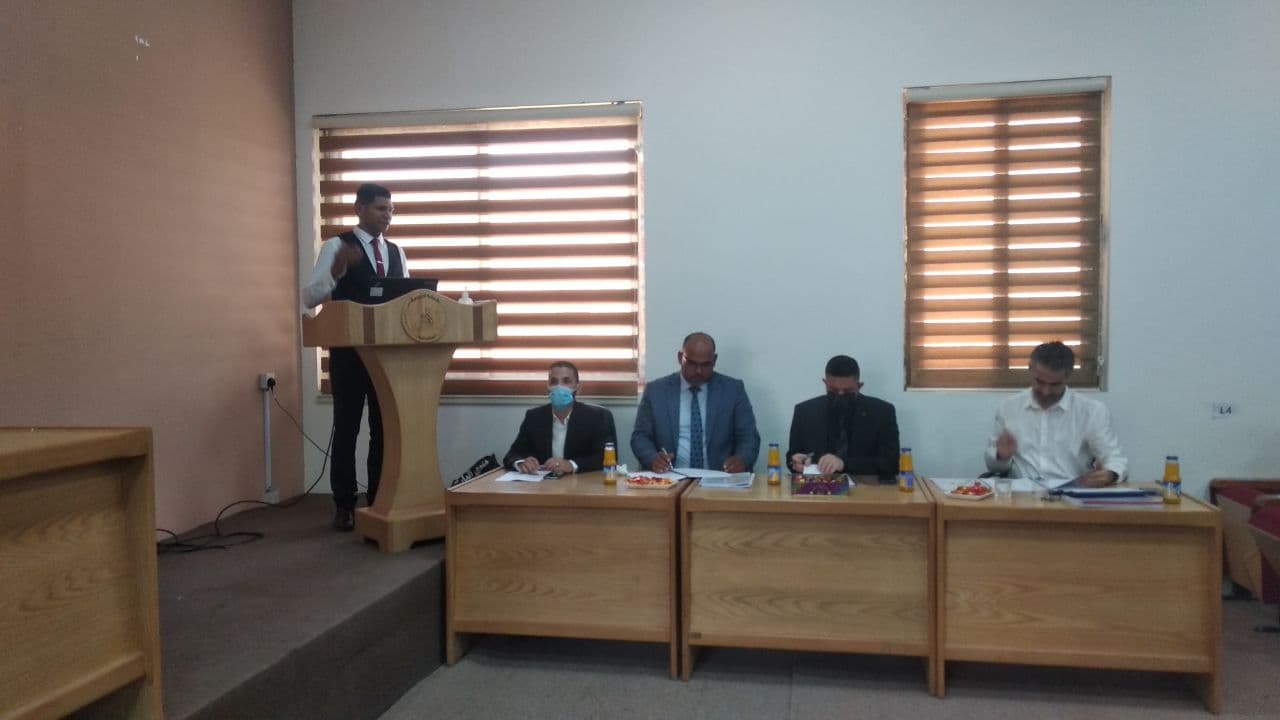 برئاسة السيد عميد كلية التمريض الاستاذ المساعد الدكتور مرتضى غانم الجبوري وعضوية لجنة مناقشة مشاريع التخرج لطلبة كلية التمريض والمؤلفة من أ.م.د نسيم صقر و م.د رهف عقل وم.د حسين المفرجي شرعت اللجنة بمناقشة الطلبة من الذين اكملو متطلبات اكمال البحث