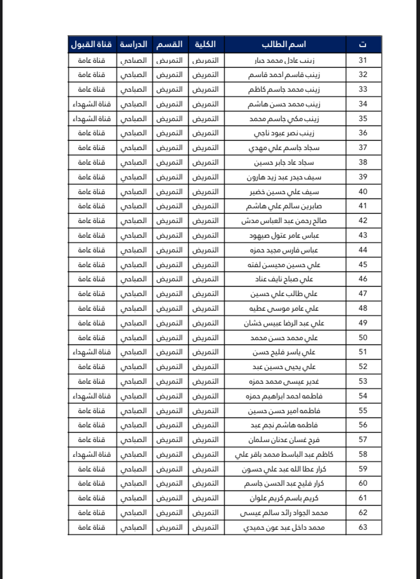 اسماء الطلبة المقبولين في كلية التمريض للعام الدراسي 2024_2025