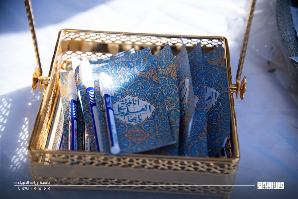 On the occasion of the blessed birth anniversary of Amir Al-Mu’minin Imam Ali ibn Abi Talib (peace be upon him), students of Warith Al-Anbiyaa University (AS) marked the occasion through a meaningful initiative that included distributing sweets and sharing selected quotes and highlights from his noble life across the university campus, aiming to promote his lofty values among the academic community.