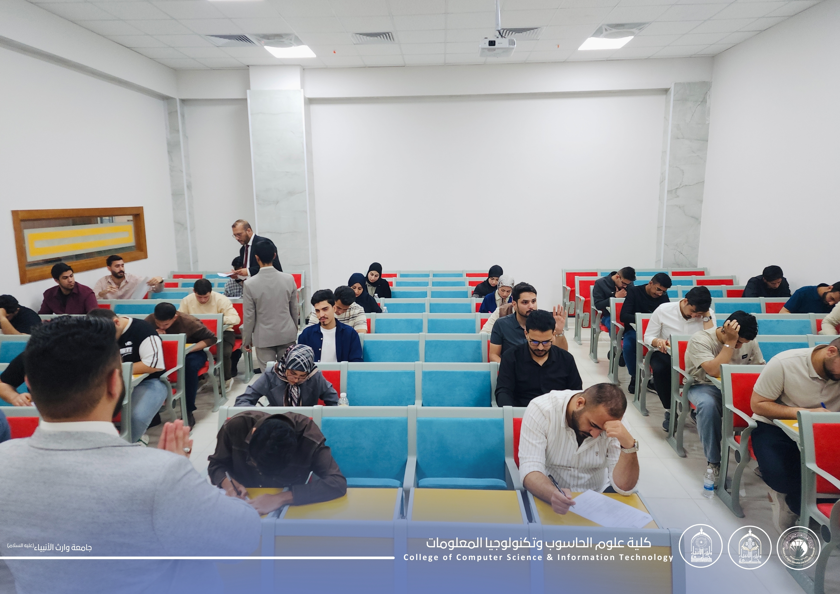 As part of efforts to enhance academic cooperation between public and private universities, the College of Computer Science and Information Technology at the University of Warith Al-Anbiyaa (peace be upon him) organized a joint examination for students of the Information Technology Department, in cooperation with the University of Karbala / College of Computer Science and Information Technology / Information Technology Department.
