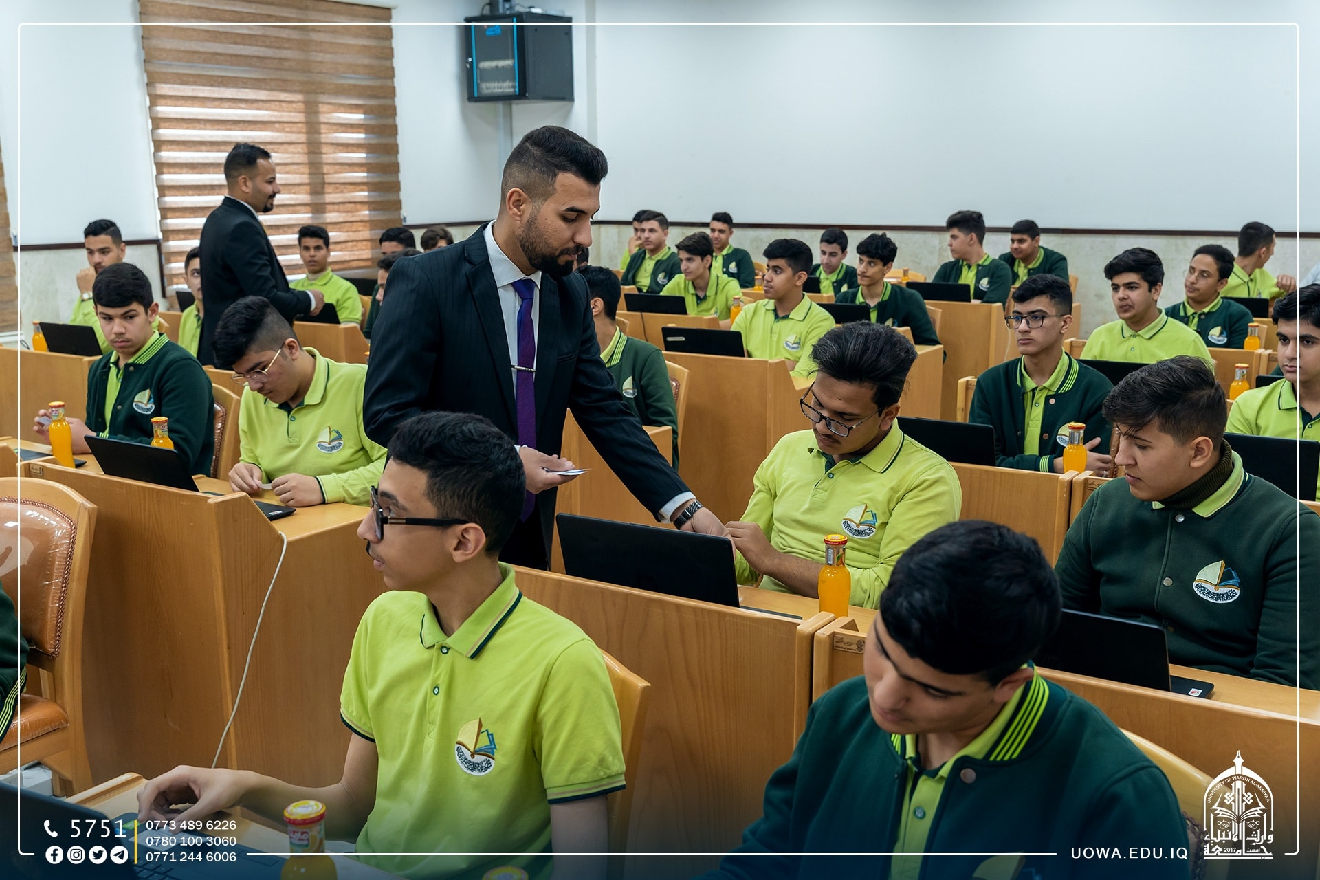 On the sidelines of the recreational scientific visit for students of Al-Warith Schools to Al-Warith AlAnbiyaa University, the Continuing Education Center held an intellectual competition for students on the university's electronic system. The questions varied between general, mathematical and scientific, and in conclusion, prizes were presented to the ten winning students.