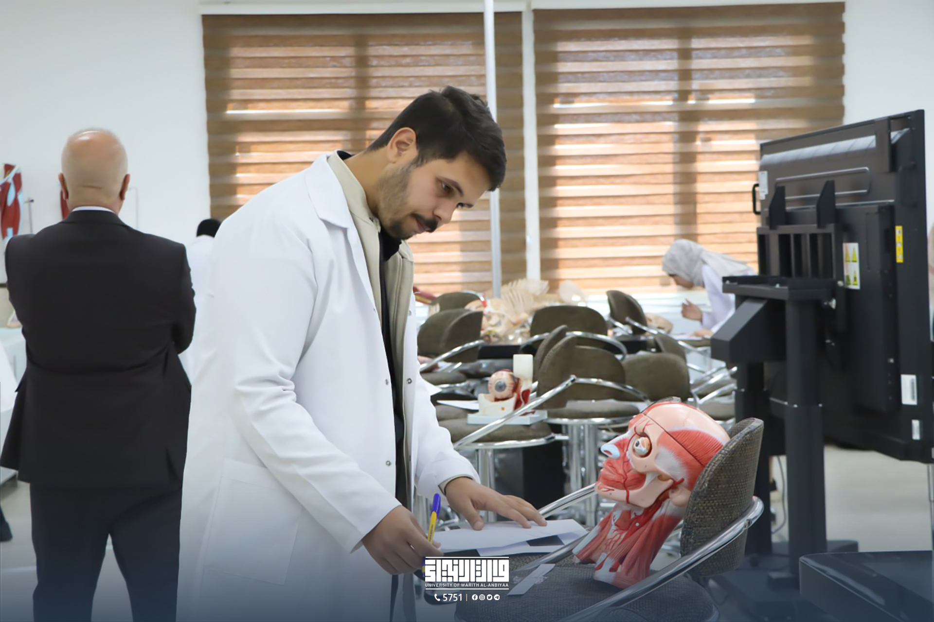 Under the supervision of Dr. Ali Abdul Saadoun, the Dean of the College of Medicine, second-year students at Warith Al-Anbiyaa University (peace be upon him) have taken mid-term exams for the practical Anatomy course. The college's administration provided all necessary scientific and logistical requirements to ensure the smooth conduct of the exams.