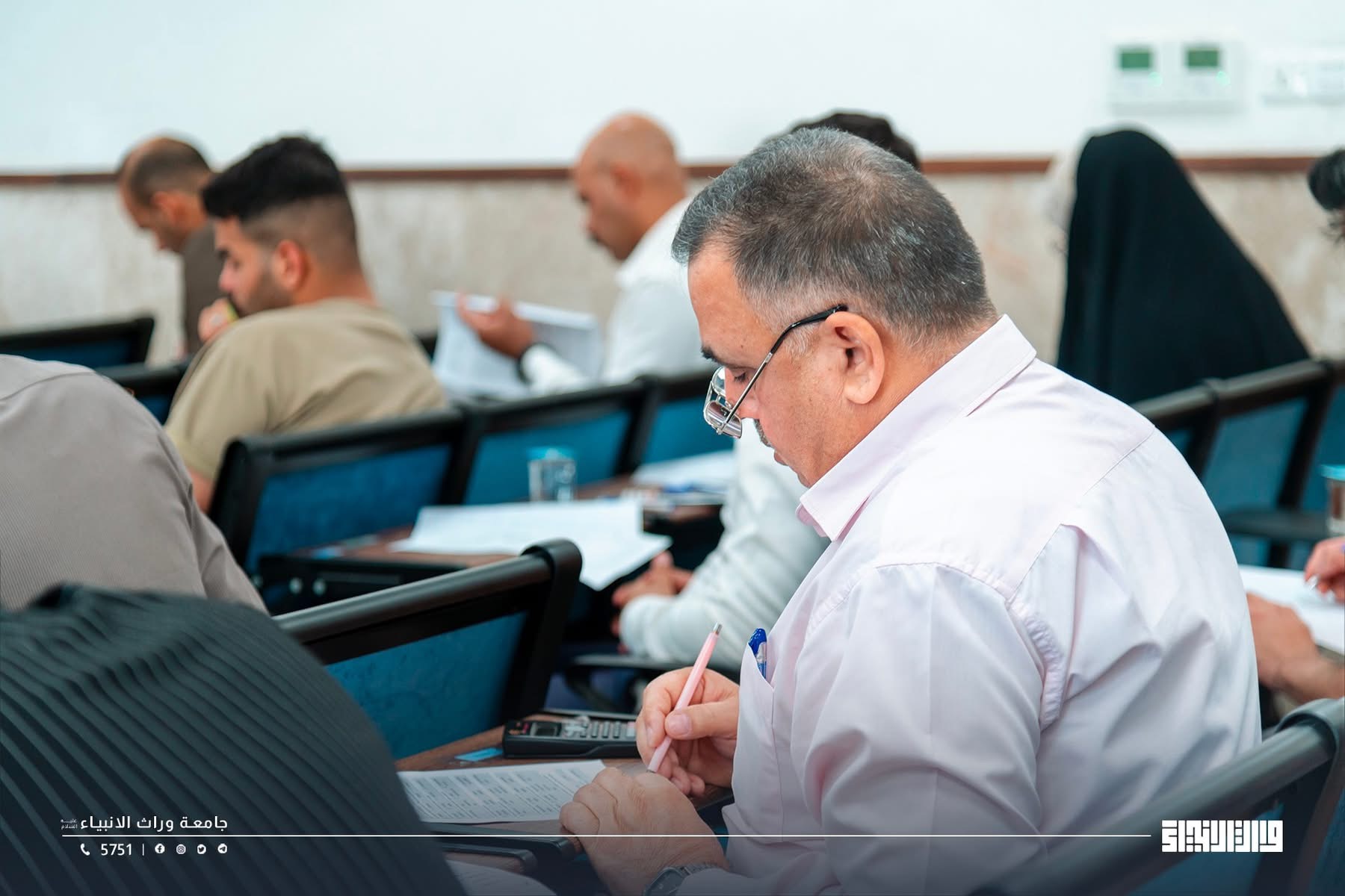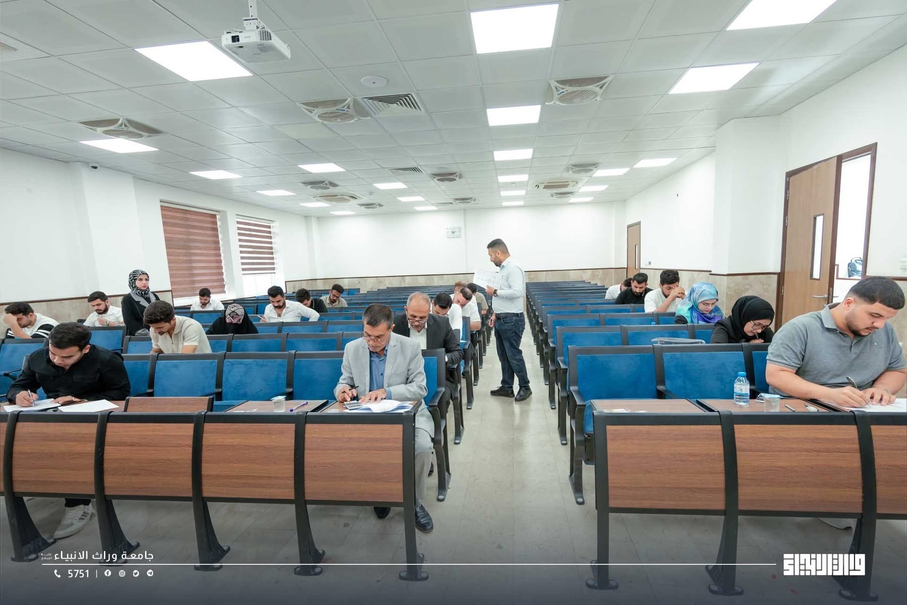 A glimpse of the final examinations at the College of Administration and Economics / University of Warith Al-Anbiyaa, conducted under the direct supervision of the university presidency, with close follow-up by the Scientific Assistant, Professor Dr. Waqid Al-Moussawi, and with the dedicated support and intensive efforts of the college deanships and examination committees