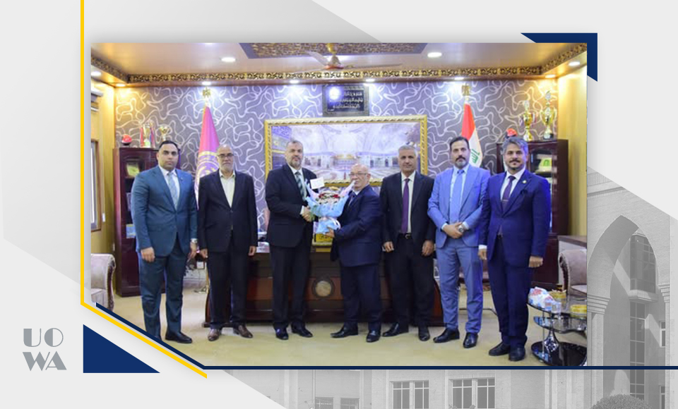 As part of strengthening academic relations and exchanging congratulations between educational institutions, a delegation from the University of Warith al-Anbiya, headed by Professor Awad Al-Khalidi, Dean of the College of Administration and Economics, made an official visit to the Polytechnic College to offer congratulations on its transformation from a technical institute to a college.