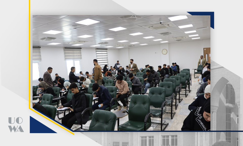 In the presence of the Dean of the College, Prof. Dr. Ali Abdul Saadoun, the Scientific Assistant, Assistant Professor Dr. Laith Al-Hussaini, and the Administrative Assistant, Lecturer Dr. Anwar Al-Dahan, the first stage exam for the subjects of Medical Terminology and Human Rights was conducted in eight classrooms, where the exams were conducted in an organized atmosphere according to the approved academic regulations and instructions. The Deanship of the College was keen to follow up on the progress of the exams in the field, and to ensure that the appropriate environment was provided for students to take their exams smoothly, while adhering to the organizational procedures that ensure transparency and justice. The importance of preparing the exam halls and providing the necessary supplies to ensure the comfort of students during the exam was also emphasized.