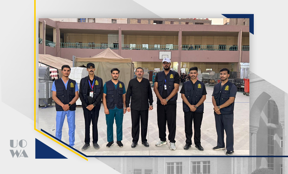 Amidst the sublime spiritual atmosphere of the immortal Arbaeen pilgrimage, the Deanship of the College of Medicine at Warith al-Anbiya University extends its highest expressions of appreciation, pride, and respect to our dear students participating in the medical service detachments deployed along all pilgrims' routes. We express our deep appreciation for the time, effort, and expertise they have devoted to treating, curing, and alleviating the pain of the honorable pilgrims. This would not have been possible without the desire, knowledge, and skill of this good group of our sons and daughters, which enabled them to perform this great task. The evaluations we received from the doctors supervising the work of our volunteer students were wonderful and a source of pride for us all. All supervisors noted the high discipline of our dear students, in addition to their academic potential and clinical skills, which qualify them to work at all times and under the most difficult conditions. This undoubtedly reflects the efforts of the college's professors in training and developing the theoretical, practical, and clinical skills of our dear students. This would not have been possible without the continuous support and ongoing supervision of the esteemed University President. In conclusion, we can only say: