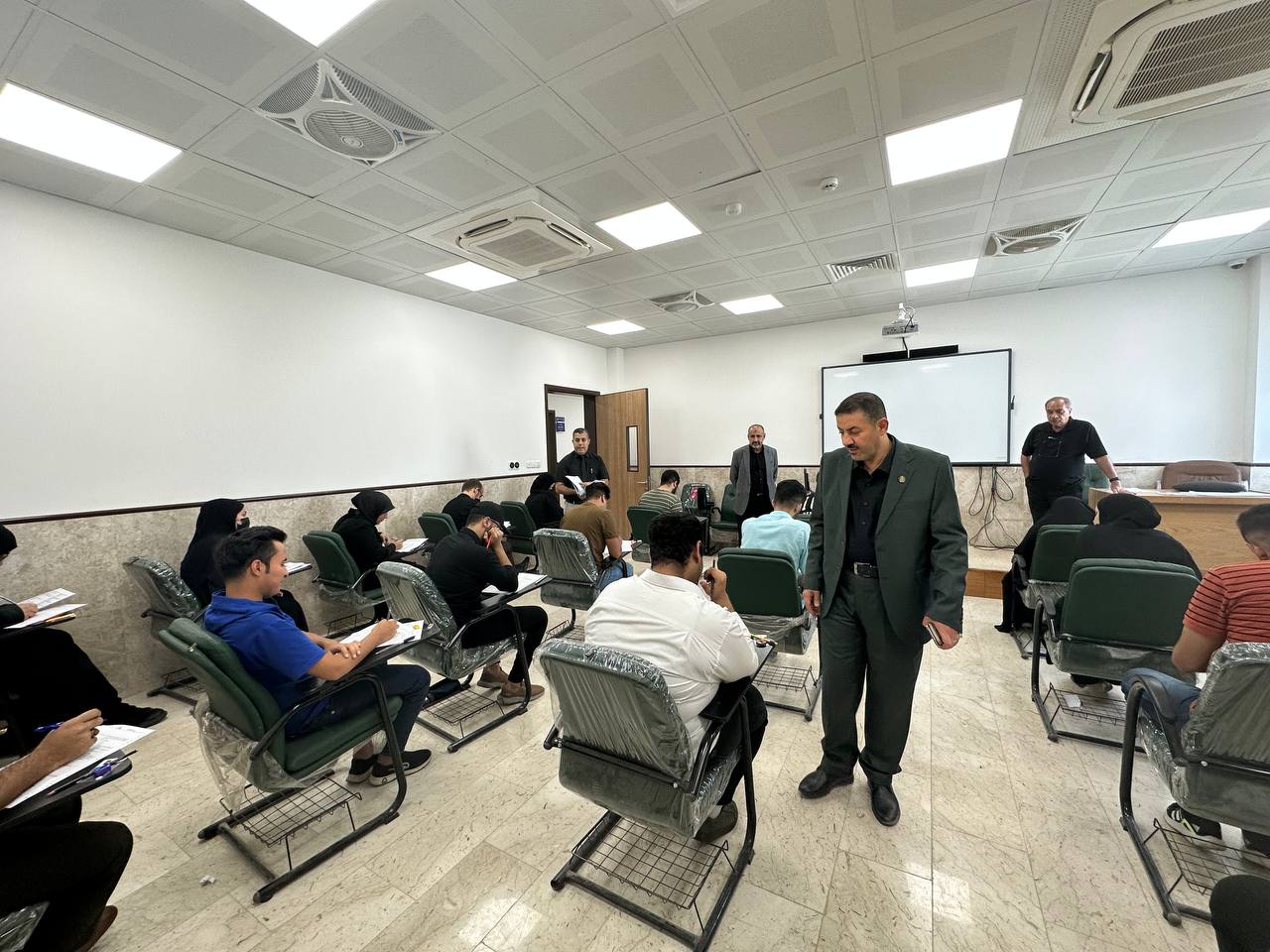 Under the supervision of the University Presidency and the follow up of the Dean of the College of Medicine, Prof. Dr. Ali Abd Saadoun, and the Associate Dean for Scientific Affairs, Lecturer Dr. Riyad Haniwah, the students performed the second round exams, wishing them success.
